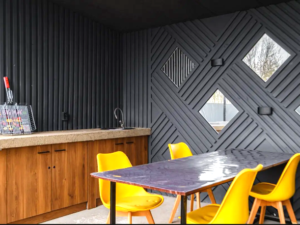 В наличии гриль зона, с которой мы предоставляем мангал, шампура, решётку, уголь, средства розжига.