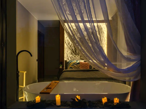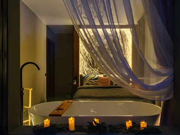 Сауна с расслабляющей подсветкой прямо в доме, уличный джакузи под звёздным небом для романтического времяпровождения температурой +36 зимой и летом.
