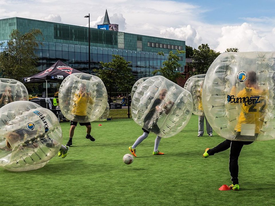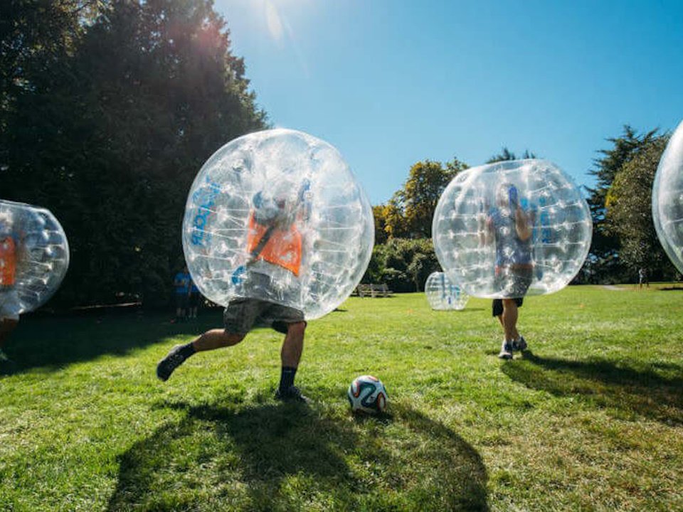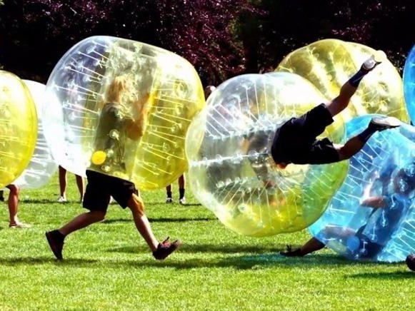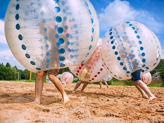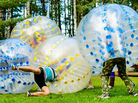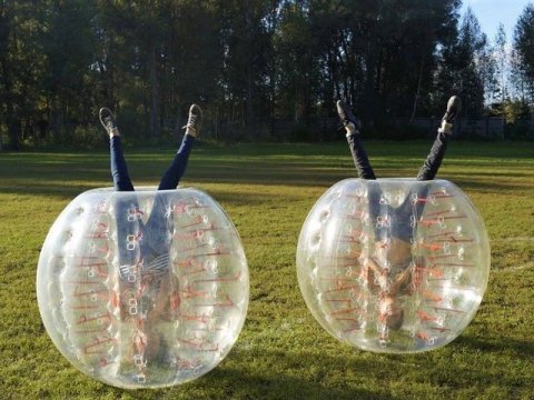 Веселиться в шарах можно и без мяча, устраивая как командные, так и одиночные спарринги - сталкиваясь друг с другом, игроки разлетаются в разные стороны, падают и кувыркаются.