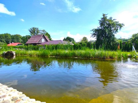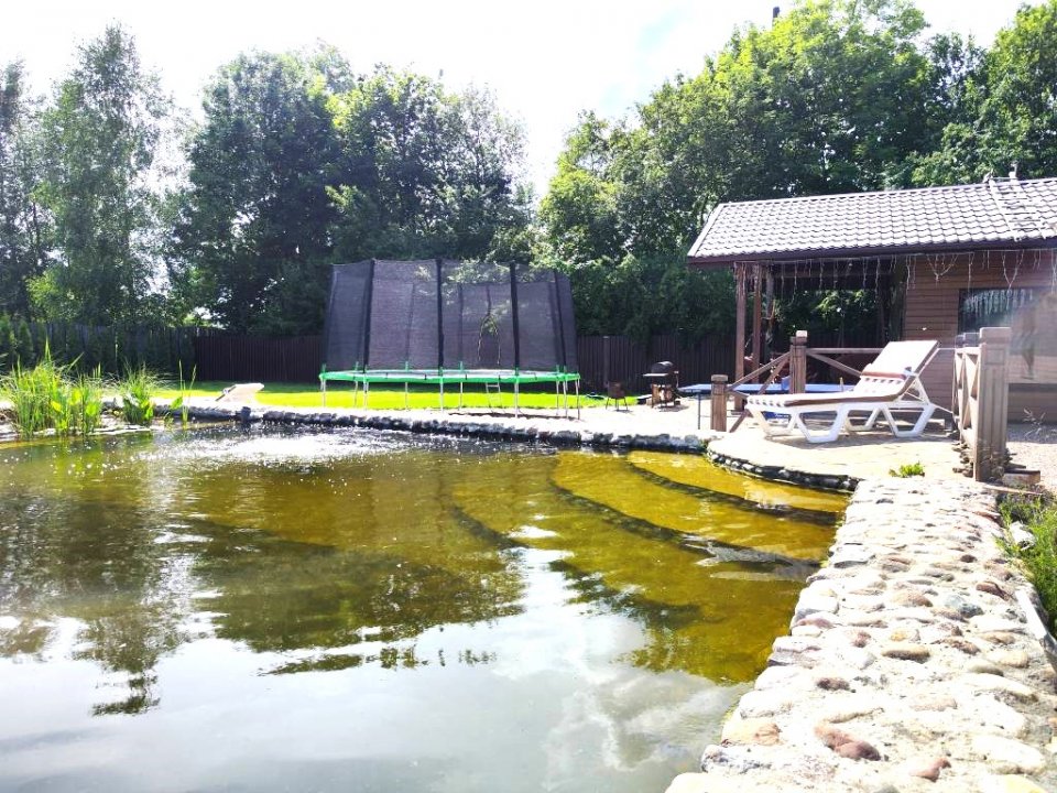 Пруд с кристально чистой водой охладит вас в жару как летом, так и в холодную зиму после баньки.