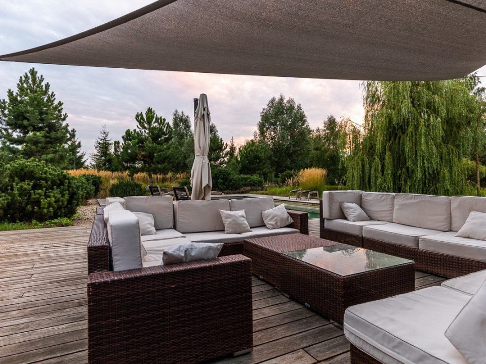 Также к вашим услугам гостевой домик с сауной, террасой под кровлей и маленьким камином.