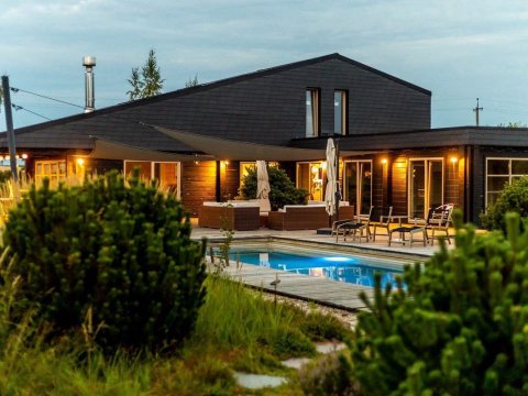 Два деревянных модных дома, полностью обустроенных для жизни, времяпрепровождения и праздника, собствннный микроклимат вдали от соседей и городского шума, вечернее освещение - всё это создаёт особый уют, от которого не хочется уходить, оставаясь гулять до рассвета.