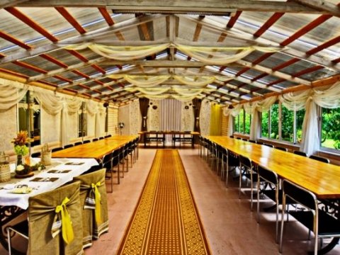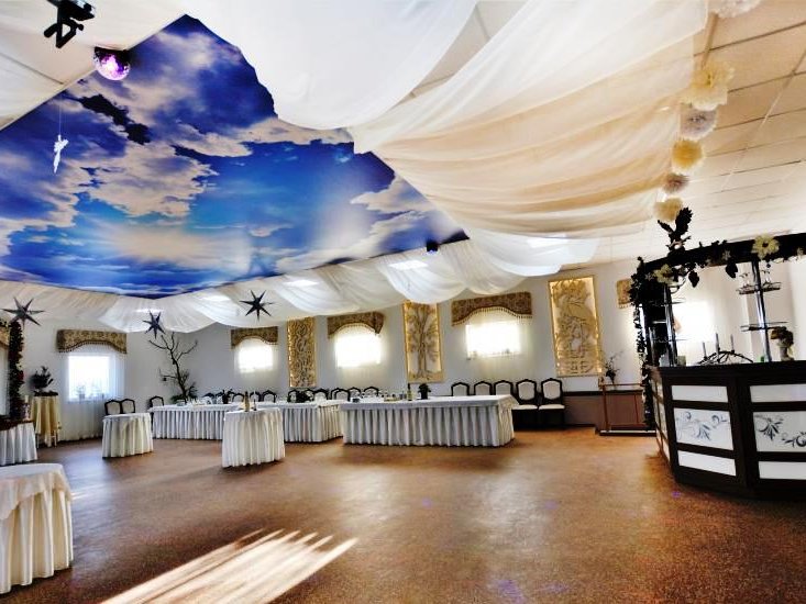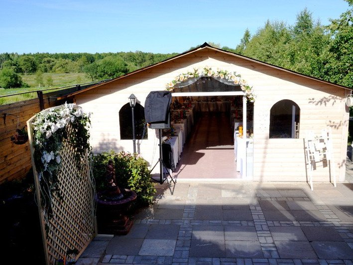 В большом летнем зале для свадебных торжеств можно провести мероприятие с количеством приглашённых до 80-ти человек.