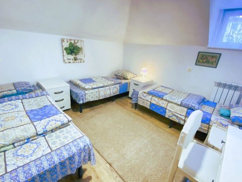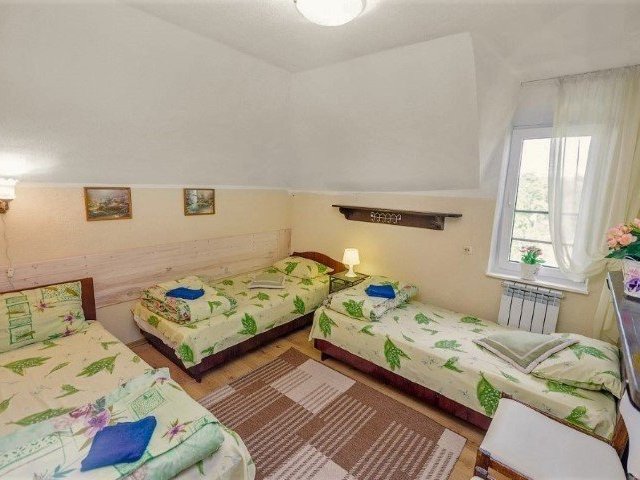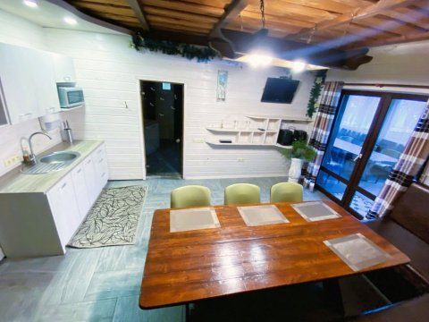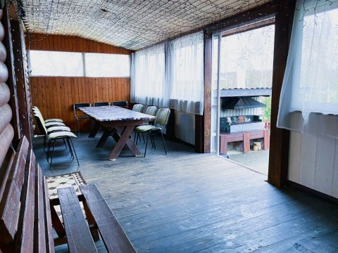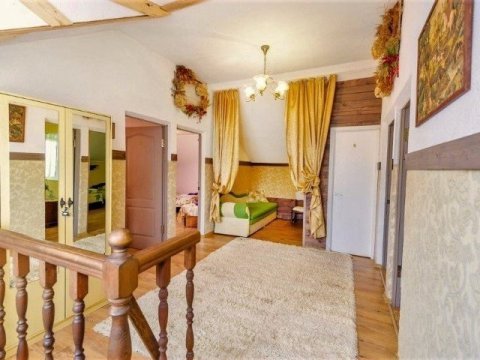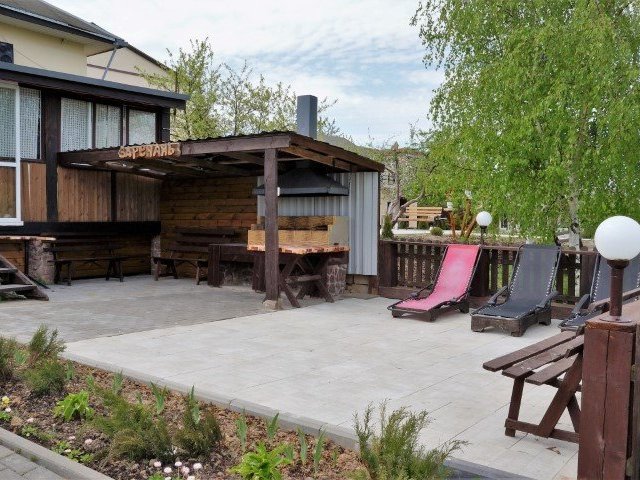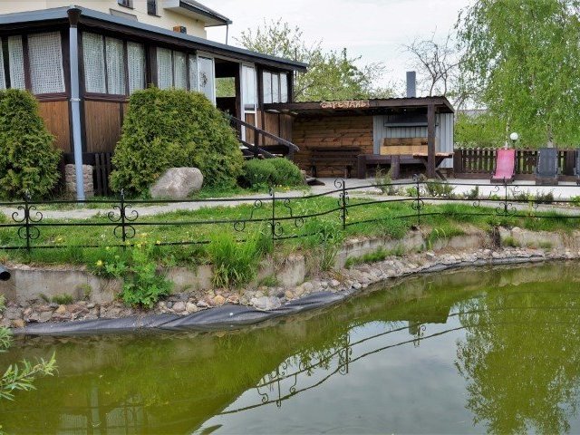 Комфортабельный двухэтажный дом c уютными комнатами отдыха и большой террасой. Рядом с домом пруд с лилиями, большая беседка с барбекю, качели.
