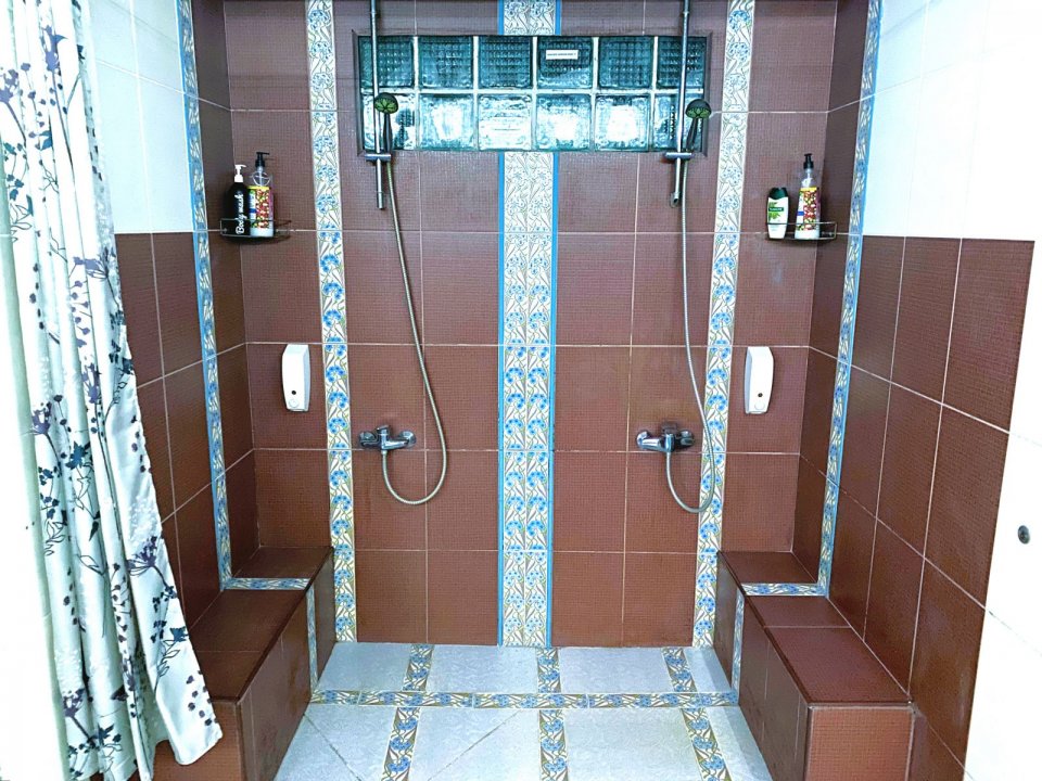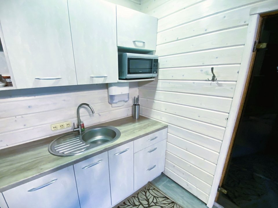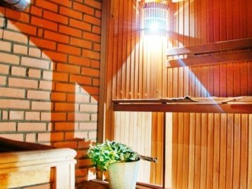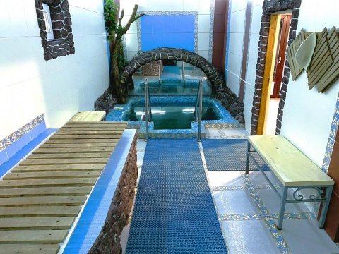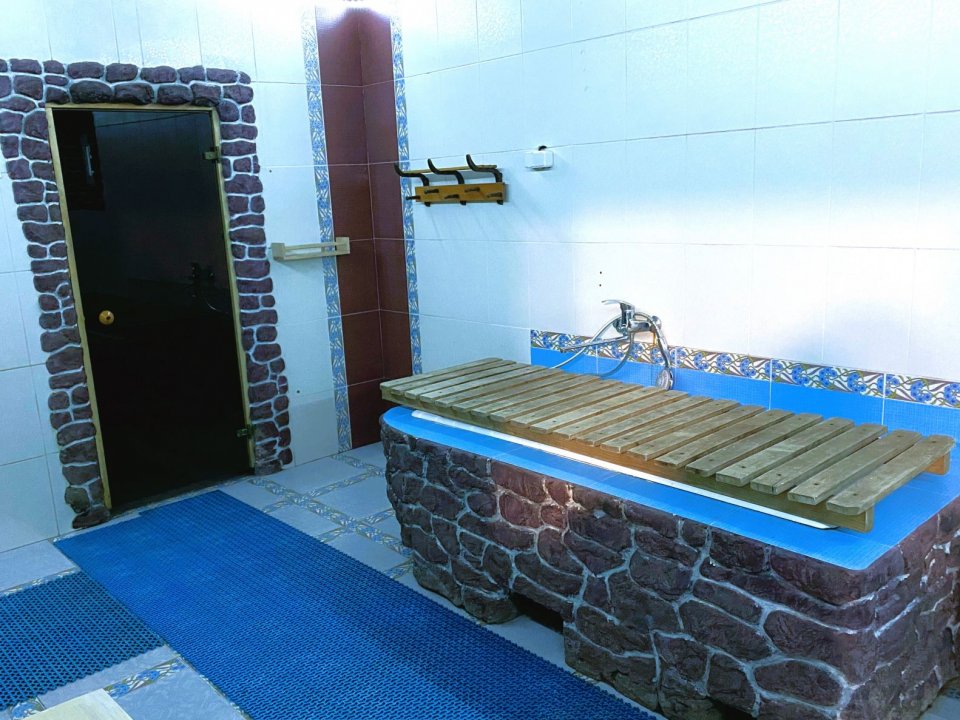 Главное место релаксации – просторная парилка на 8 человек, после которой одно удовольствие окунуться в прохладный бассейн. Аромамасла, веники, простыни, массажеры для спины и ног, фиточаи - всё это включено в стоимость аренды. Имеется ванна и два душа. Для желающих предоставляются услуги профессионального массажиста.