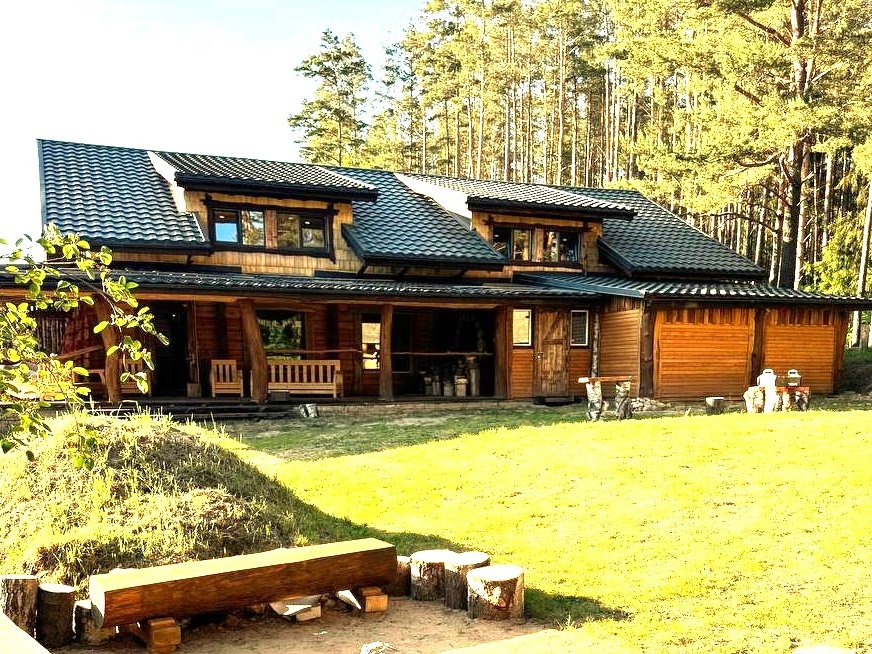 Коттедж расположен в живописной местности в 10-ти минутах езды от города и выполнен из исключительно экологичного материала.... Тут же расположена уникальная русская баня на дровах. На втором этаже оборудованы 3 спальные комнаты отдыха, где с ночлегом могут разместиться до 10 человек. На улице оборудована летняя терраса с мебелью и мангалом. Есть чан с подогревом. В распоряжении гостей также имеется просторная зона для активных игр на свежем воздухе. Здесь можно поиграть в мяч, дартс или настольные игры. Тут вы можете арендовать велосипеды, прогуляться по сосновому лесу, сходить за грибами или просто отдохнуть в тишине на свежем воздухе. К нам легко и удобно добраться как на личном авто, так и на общественном транспорте. Рядом расположена остановка электрички и загородного автобуса. Снять комплекс № 118 или другой коттедж на сутки можно на нашем сайте www.Snimi.net.