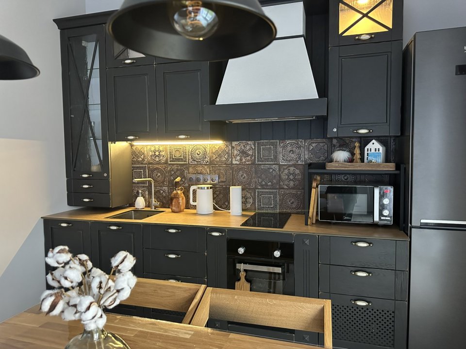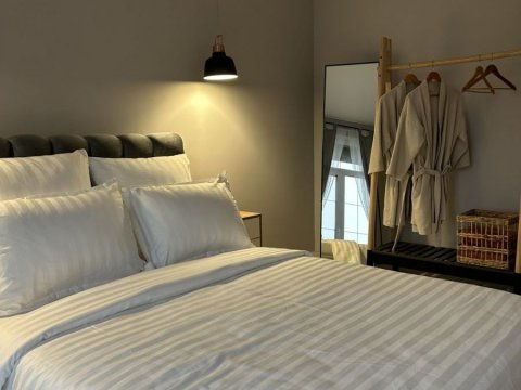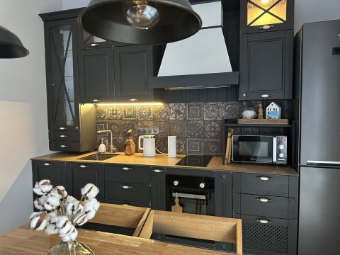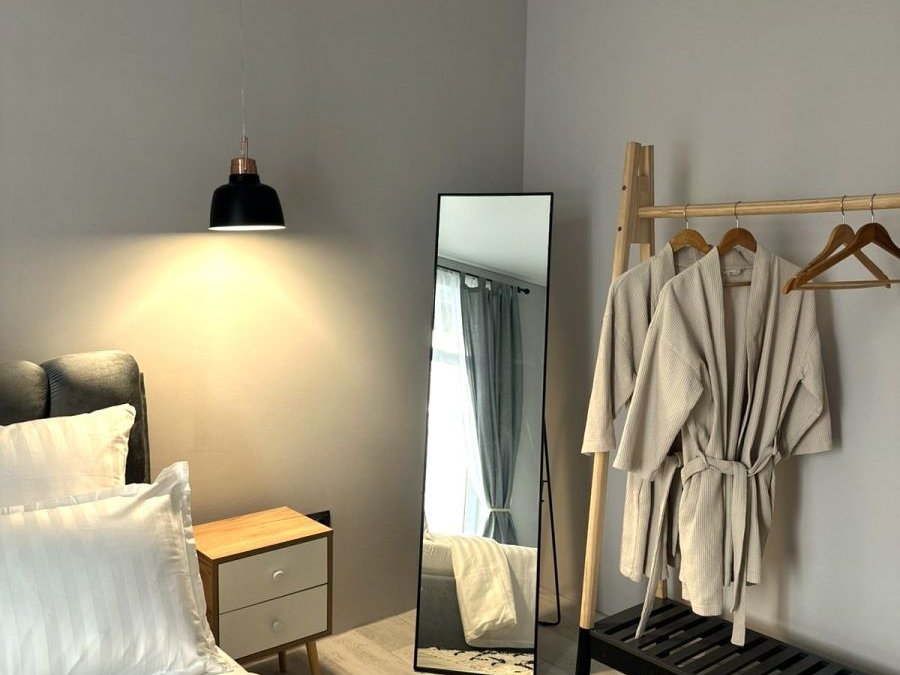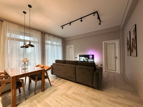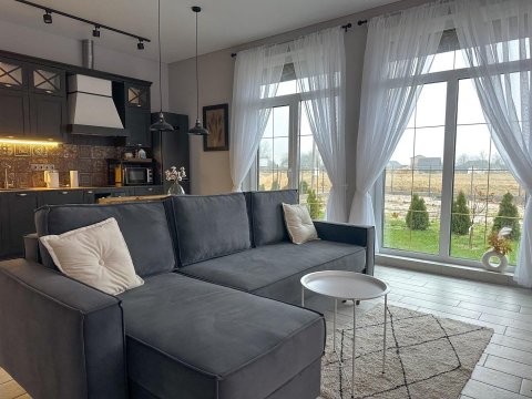 В наличии всё самое необходимое для проживания. Гостиная с диваном и кухонной зоной, интернет, телевидение, отдельная спальня.
