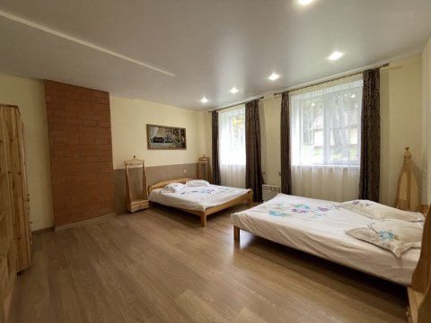 Второй дом комплекса (на сайте под № 127) позволяет разместить с ночлегом 20 человек, расположен рядом, имеет 4 спальни и 2 санузла. Большой компанией до 37-ми человек можно арендовать сразу оба коттеджа.
