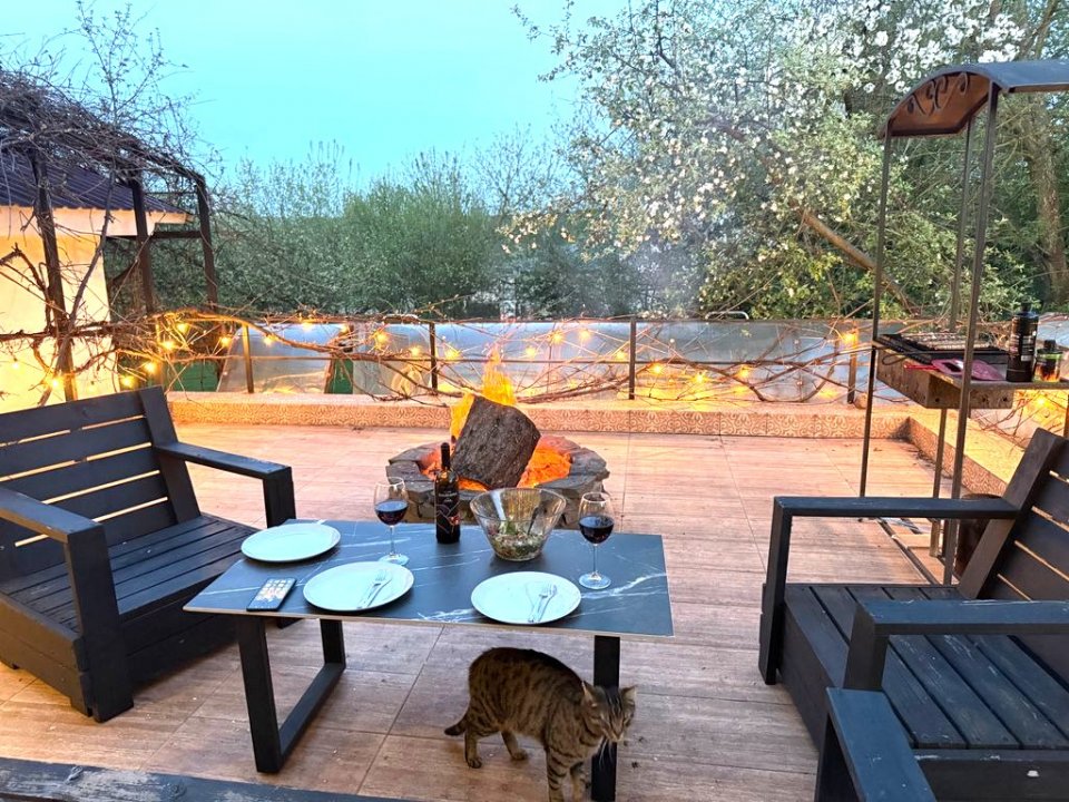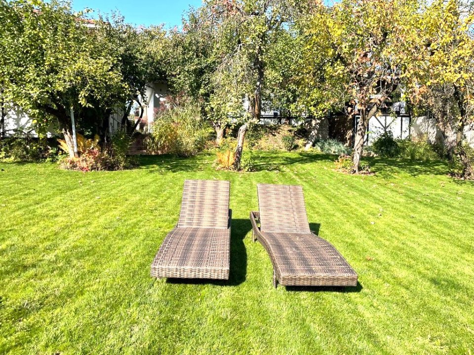 Дом находится в частном секторе, что гарантирует спокойствие и уединение. Вас ждёт ухоженная территория, утопающая в зелени, с множеством деревьев и цветущих растений – идеальное место для отдыха душой и телом.