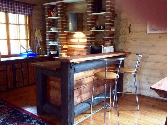 Предоставляем для вас двухуровневый, экологически чистый дом из бруса. Интерьер коттеджа на сутки выполнен в оригинальном дизайне, в котором прекрасно гармонируют старинные деревенские нотки с современными.