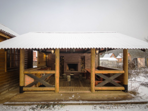 На ухоженной территории усадьбы оборудована просторная деревянная беседка для проведения пикника на свежем воздухе, с местом для приготовления ароматного шашлыка.