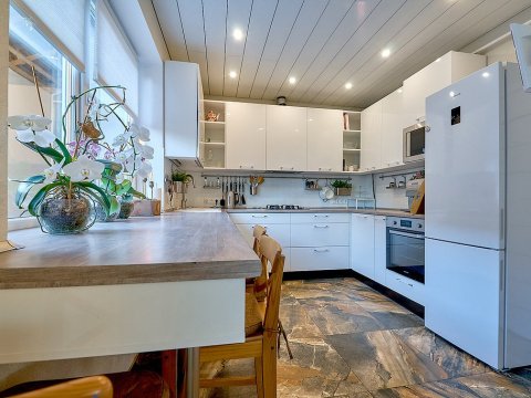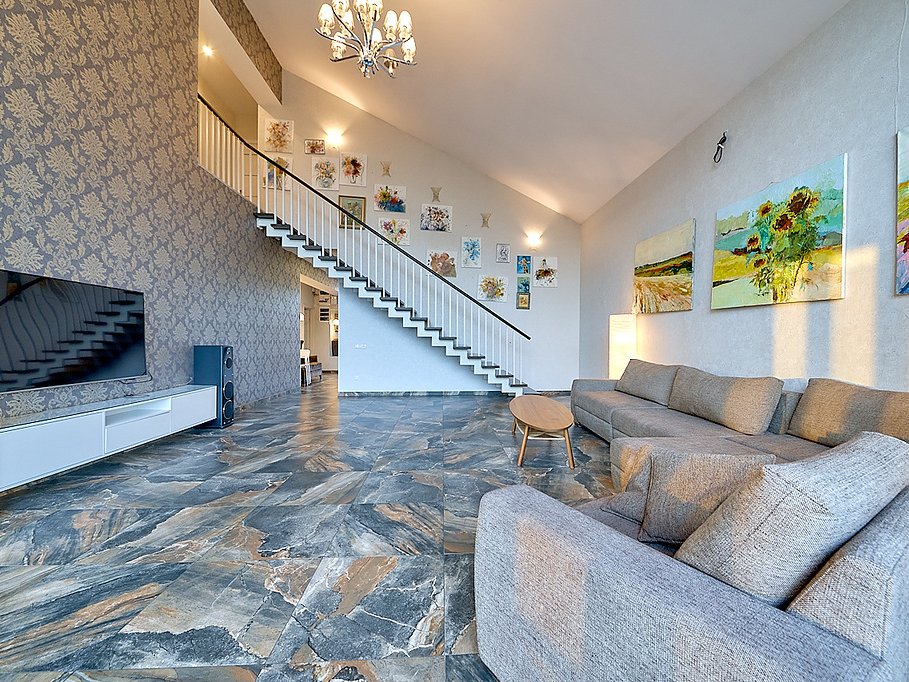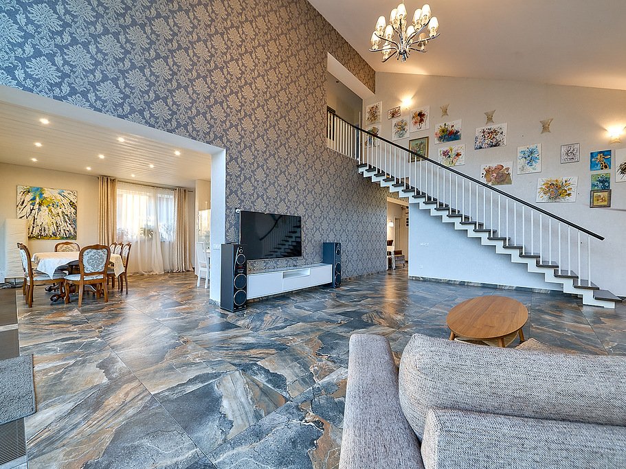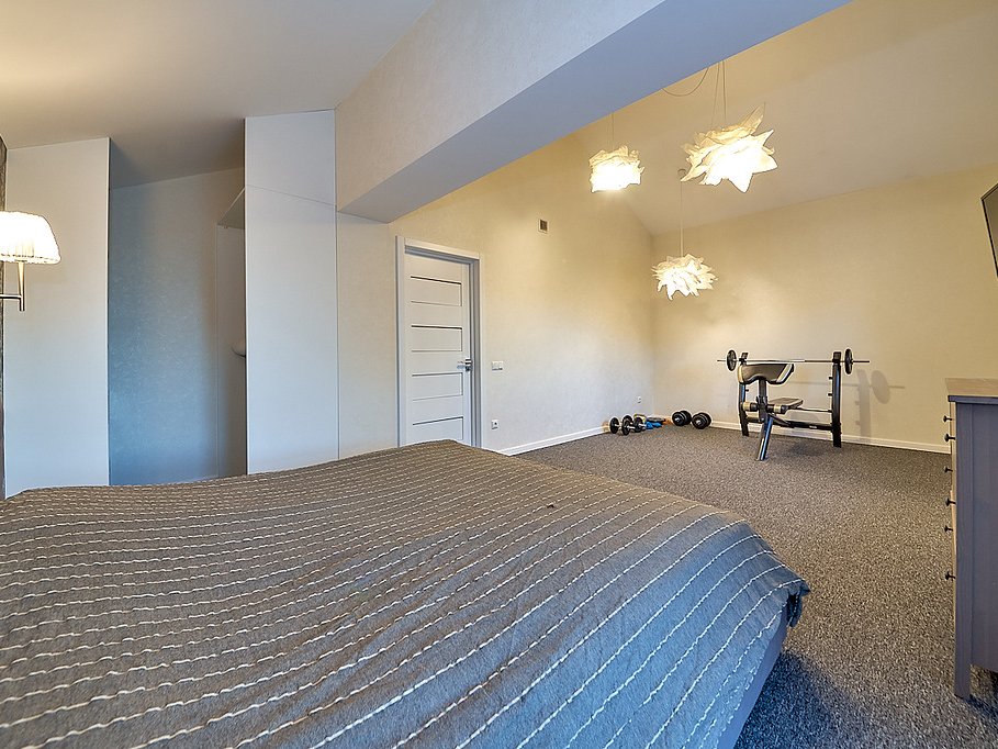 В доме 4 спальни с двуспальными кроватями, 2 гостиные с большими диванами, просторная кухня. В вашем распоряжении 3 санузла и 2 душа.
