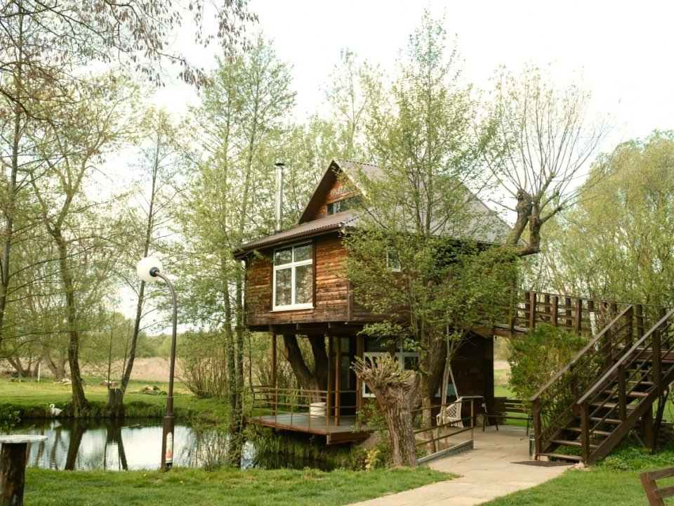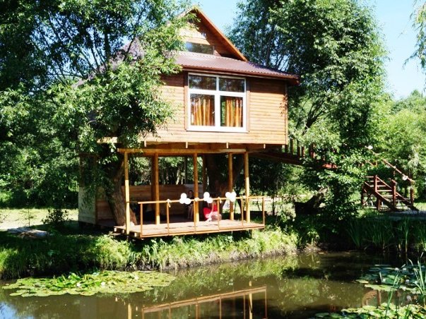 Предлагаем вашему вниманию уникальный проект - очаровательный и уютный домик на дереве.... В домике с комфортом смогут разместиться 4 человека. В вашем распоряжении кухонный уголок с холодильником и микроволновкой, просторная комната с телевизором, двуспальной кроватью и другой удобной и необходимой мебелью. Доступен безлимитный интернет. По деревянной лестнице поднимаемся на второй ярус, где расположено ещё одно просторное место для ночлега. К вашим услугам душ и биотуалет. Домик небольшой - 6х6 метров, с двумя балкончиками, с которых открывается чудесный вид на пруд и красоты окружающей природы. По вашему желанию, будет предоставлено трёхразовое питание. Из развлечений в усадьбе имеется так называемая "тарзанка". К ветке высокого дерева прилажена веревка с рукояткой, держась за которую, пролетаешь над водой на высоте шесть, а для самых смелых - двенадцать метров. А потом разжимаешь руки и падаешь в озеро. Поверьте, не каждый отважится на такое. Банный комплекс усадьбы включает в себя и настоящую русскую баню, и более классическую парную. Вас ждет просторная парилка из натуральной ольхи, березовые веники и свежие простыни. Предоставляются ароматические составы, масла и травяные чаи. Уникальным предложением является выездная баня на колесах - это мобильный дом с гостевой комнатой и парилкой на 6 человек. В усадьба есть всё для полноценного отдыха: различные беседки, возможность организации пейнтбола и лазертага, волейбольная площадка и настольный теннис. Организуем спортивные и массовые мероприятия, развлекательные шоу-программы, экскурсии. Своим гостям мы предлагаем полёты на спортивном самолёте, катание на квадроциклах, охоту и рыбалку. Кроме того, в усадьбе отдельно можно арендовать семейный, банный или гостевой дом (см. коттеджи № 107, 105 и 104). Территория усадьбы освещается в любое время суток, есть абсолютно все, что необходимо для различных видов отдыха. В 11-ти километрах от нас находится известный в Беларуси и за её пределами Музей материальной культуры "Дудутки". Снять домик № 141 или другую усадьбу на сутки можно на нашем сайте www.Snimi.net. ОТДОХНУВ В ЛЮБОМ ИЗ ПРЕДСТАВЛЕННЫХ КОТТЕДЖЕЙ, НЕ ЗАБУДЬТЕ ПЕРЕЗВОНИТЬ НАМ, ЧТОБЫ ПОЛУЧИТЬ НЕБОЛЬШОЙ ПОДАРОК ОТ САЙТА.