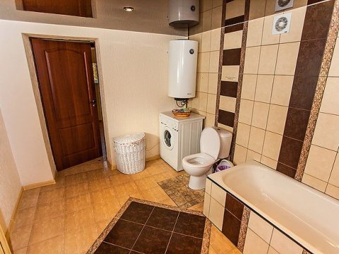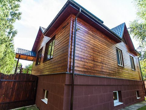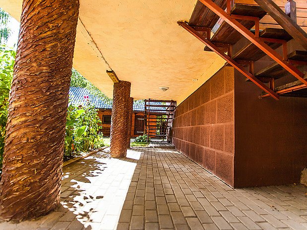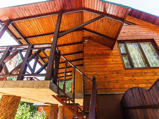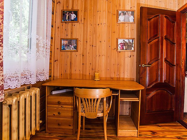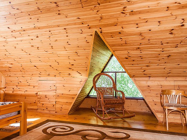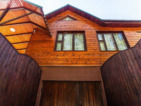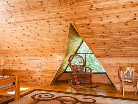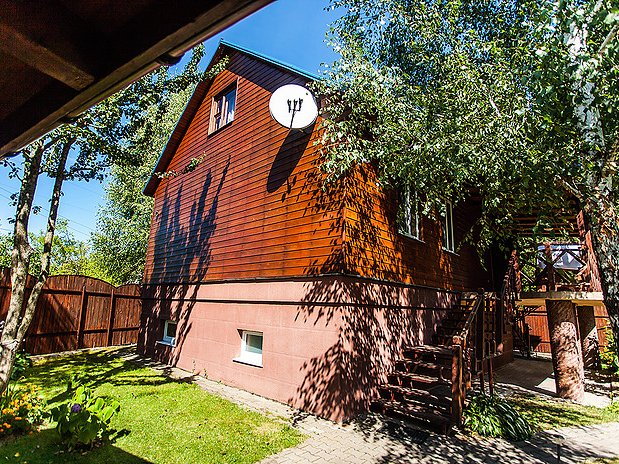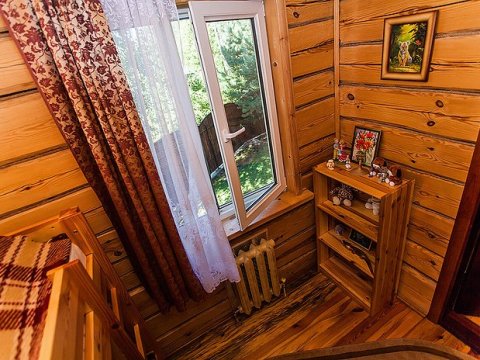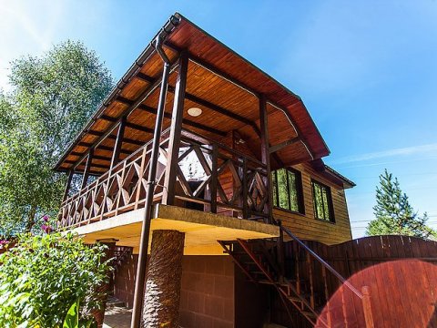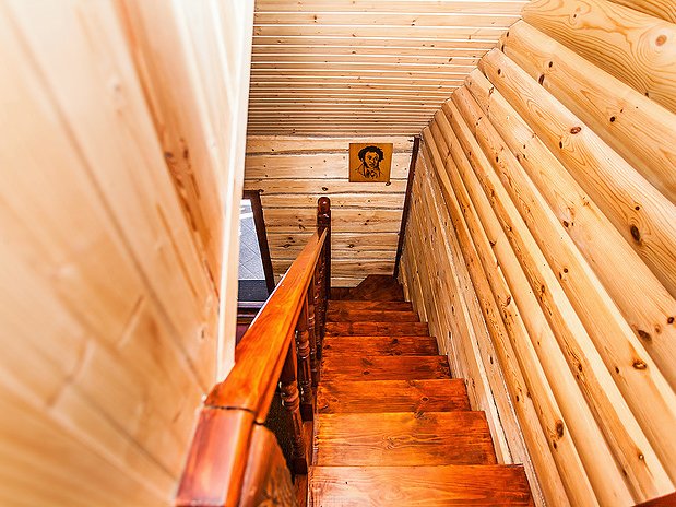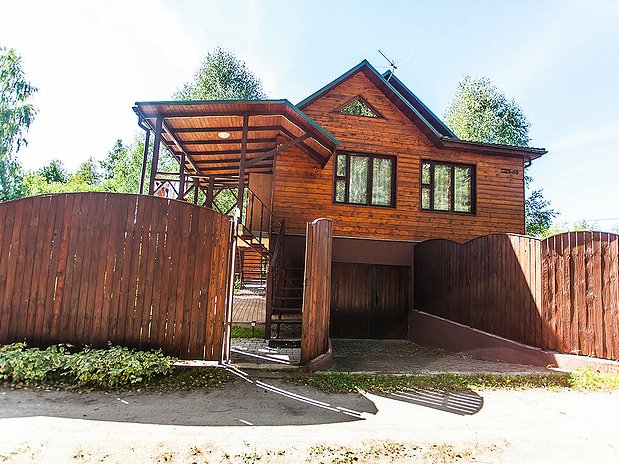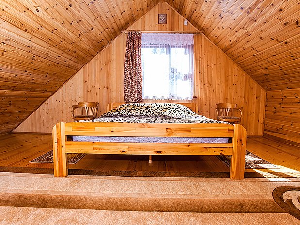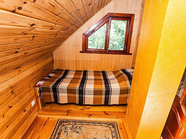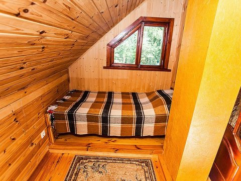 Вместительный трёхэтажный коттедж на сутки общей площадью 180 кв. метров, выполненный исключительно из экологически чистого материала, разместит в своих стенах с ночёвкой до 24-х человек. В распоряжении гостей 5 комфортных, по-домашнему уютных спальных комнат.