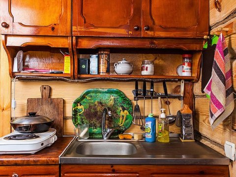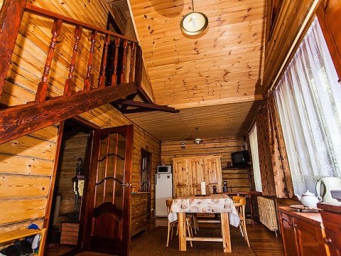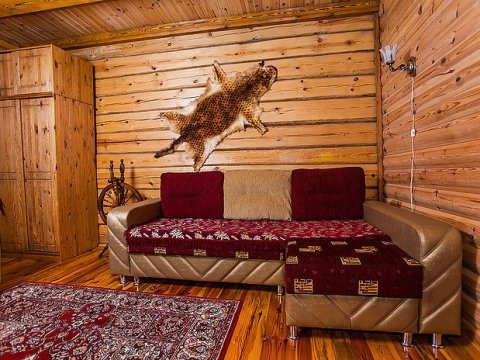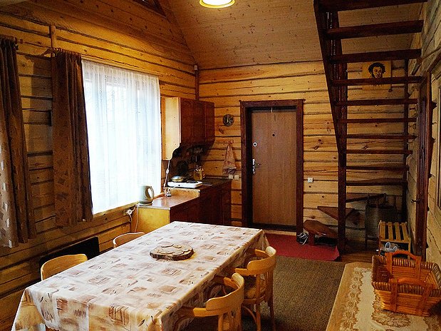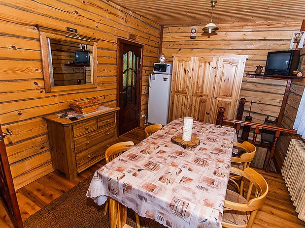 К вашим услугам просторная гостиная, обставленная добротной мебелью, зал с камином, оборудованная необходимой бытовой техникой и посудой кухня. Вы можете самостоятельно заняться приготовлением еды, либо, по предварительной договорённости, возложить эту обязанность на владельцев усадьбы.