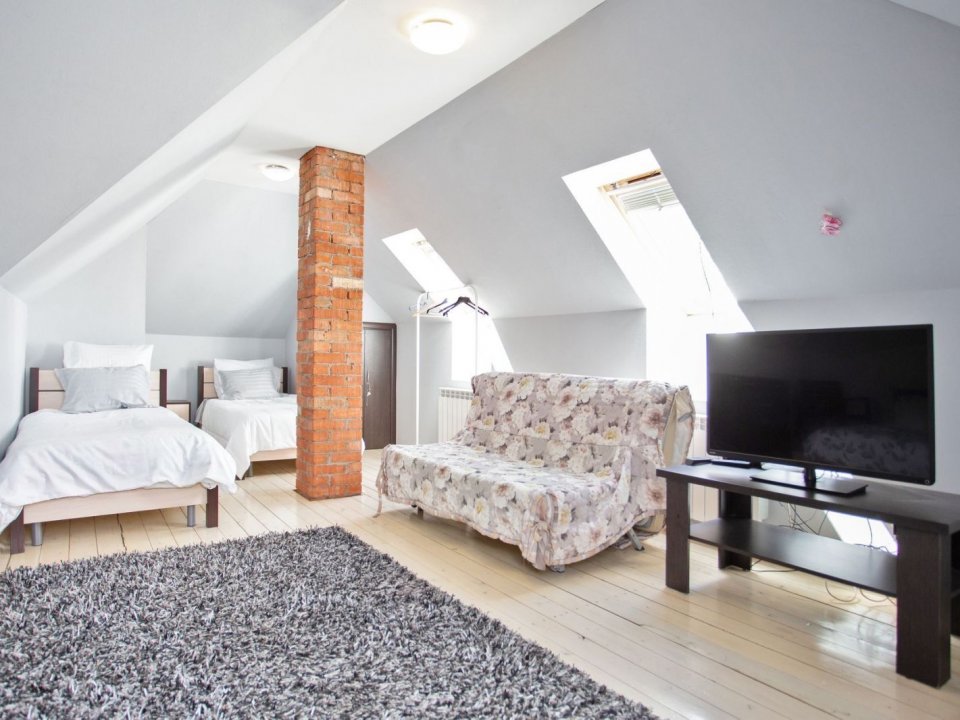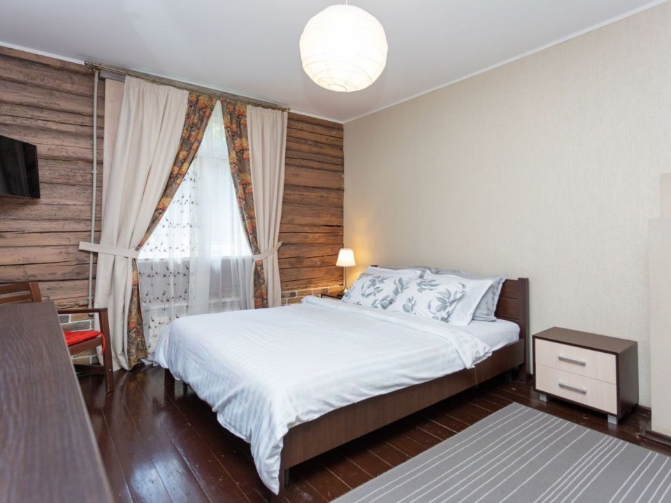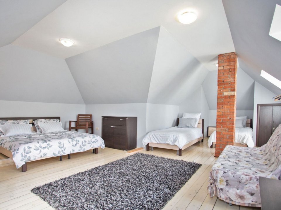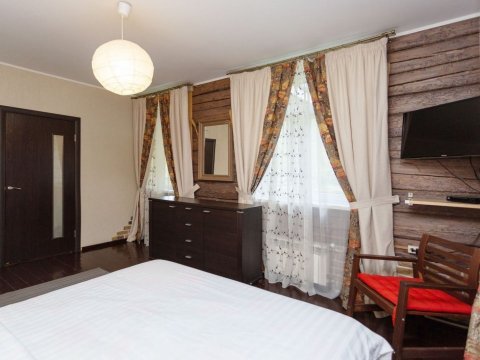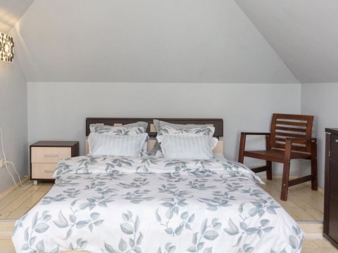 Внимание! Современный, двухуровневый коттедж на сутки, входящий в состав загородного комплекса для отдыха - идеально подходит как место проведения семейного уик-энда, вечеринки в кругу хороших друзей и знакомых, корпоратива. Вы можете снять коттедж отдельно либо весь комплекс целиком, встретить в нём Рождество или Новый год. Стильный, просторный дом, интерьер которого выдержан в стиле "минимализм", оставит самые яркие и незабываемые впечатления. На первом этаже коттеджа на сутки вы можете посидеть с друзьями в просторной гостиной или уединиться у ирландского камина. Здесь также находятся две изолированные спальни, стильная кухня, оборудованная необходимой посудой и техникой, современная душевая кабина. Второй этаж полностью отдан под просторную спальню, вмещающую 6 человек. Скошеные белые потолки, много света и пространства, интерьер помещения выдержан в мягких, постельных тонах. Всего в доме, включая гостиную, 4 отдельные спальные комнаты. Для комфортного отдыха в доме в наличии спутниковое телевидение, большая плазма, безлимитный wi-fi. Большая, выполненная из дерева, терраса позволит приготовить барбекю, отведать вместе с друзьями шашлык, выпить на воздухе чашечку кофе или что-нибудь покрепче. Особой гордостью комплекса является сауна с аквазоной, которая находится в соседнем доме. Там вы сможете по-настоящему расслабиться, поплавать в теплом бассейне. Гостям предоставляются веники, простыни и сланцы. При аренде всей усадьбы целиком, услуги банного комплекса предоставляются в подарок. Если вы снимаете коттедж отдельно, аренда сауны с бассейном, при условии незанятости домика с ними, обойдётся в 60 у.е. за 4 часа. К услугам гостей, в нашем загородном комплексе имеется также русская банька на дровах. За символическую плату в 10 у.е., почитатели горячего пара получат незабываемые впечатления. Арендовать весь комплекс на сутки с ночёвкой можно в компании 17 человек, а в дневное время комфортно будут себя чувствовать до 28 гостей. Организовать мероприятие с большим количеством приглашённых можно в специально оборудованной для этих целей большой застеклённой беседке с камином. В холодное время года беседка обогревается, в ней всегда поддерживается комфортная температура. Аренда застеклённой беседки оплачивается отдельно. Её можно арендовать отдельно от коттеджа (100 $). Снять коттедж № 148 или другую усадьбу на сутки можно на нашем сайте www.Snimi.net. ОТДОХНУВ В ЛЮБОМ ИЗ ПРЕДСТАВЛЕННЫХ КОТТЕДЖЕЙ, НЕ ЗАБУДЬТЕ ПЕРЕЗВОНИТЬ НАМ, ЧТОБЫ ПОЛУЧИТЬ НЕБОЛЬШОЙ ПОДАРОК ОТ САЙТА.