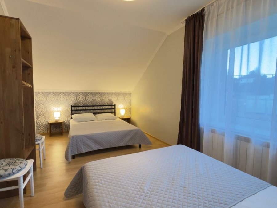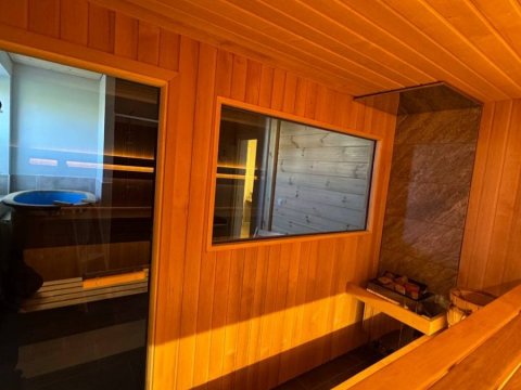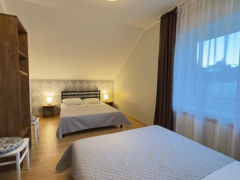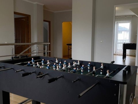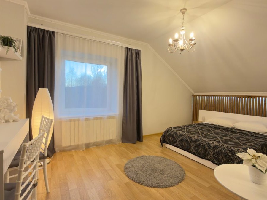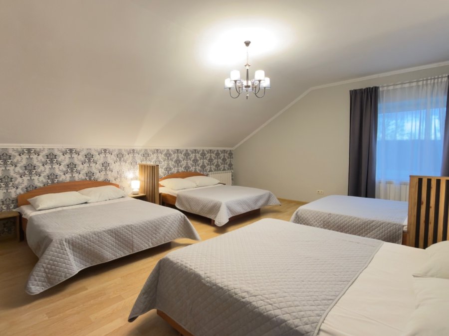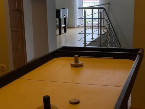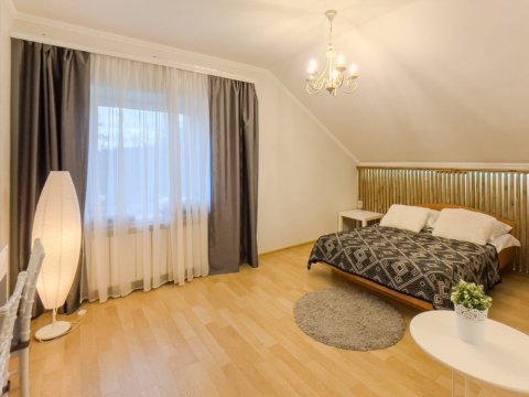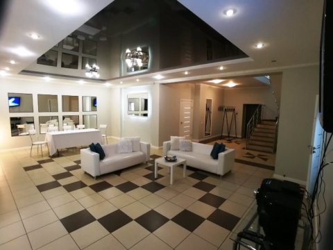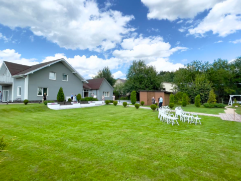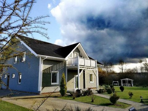 Коттедж на сутки расположен всего в нескольких минутах езды от столицы. С ночлегом дом может принять до 30-ти гостей, а вот в дневное время в его стенах комфортно будут чувствовать себя до 80-ти человек. Именно на такое количество людей рассчитан имеющийся банкетный зал. На специально отведённом танцполе вы сможете потанцевать под зажигательную музыку. И не нужно беспокоиться о том, что уже поздно и хорошо бы сделать звуке потише, ведь поблизости от коттеджа под Минском нет соседей, для вас — полное раздолье.
