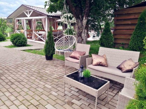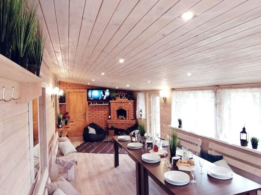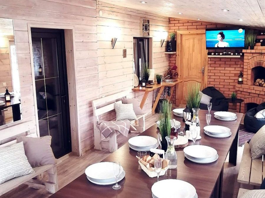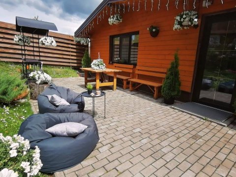 Домик с сауной или сельской банькой на дровах со спальной комнатой до 6 человек, открытой террасой с местом для курения и отдыха, мангальной зоной, беседкой на 6 человек