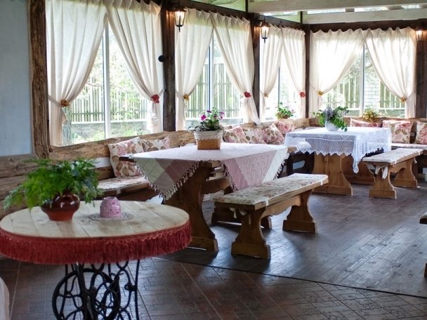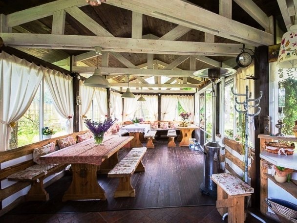 Для проведения различных торжеств и банкетов предлагаем забронировать шикарную беседку, рассчитанную на 30 человек. Арендовать её можно с мая по ноябрь. Оформление беседки напоминает уютный домашний ресторан и создает приятную атмосферу. Гостям предоставляется в распоряжение кухня, мангал и удобная мебель.