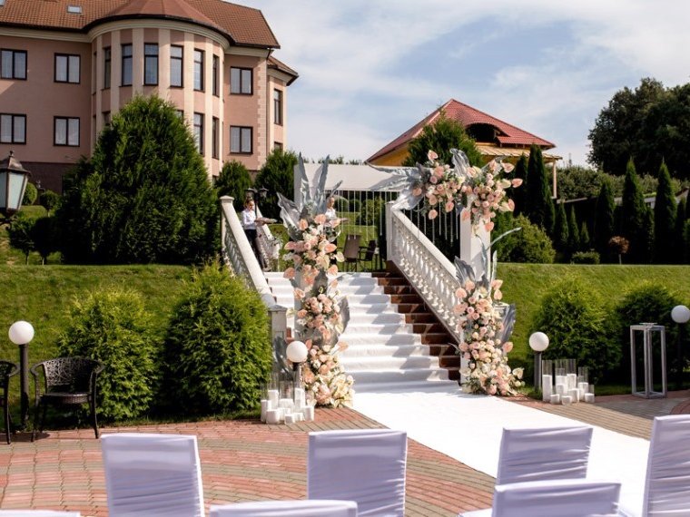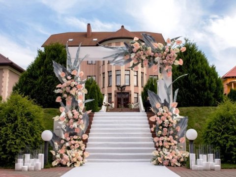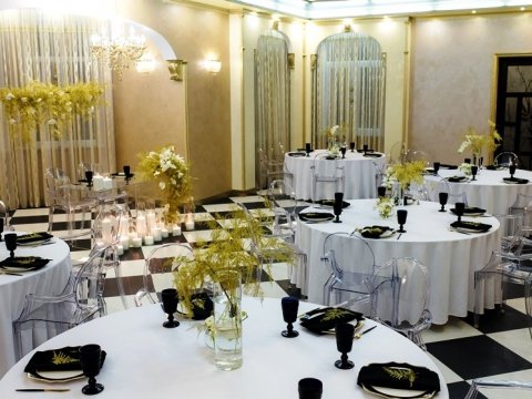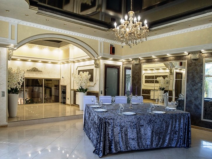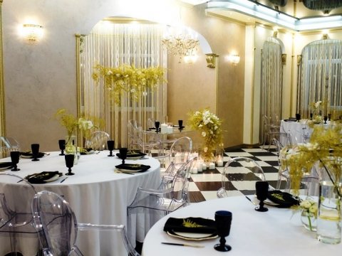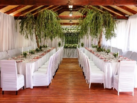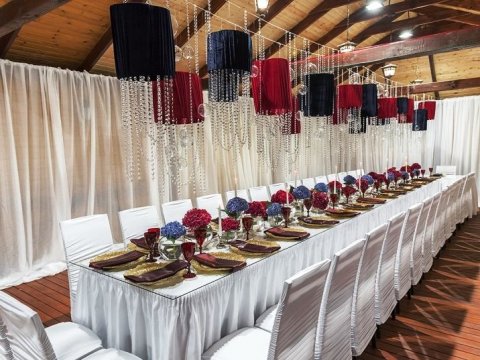 организуется трансфер, предоставляется стильный банкетный зал на 80 персон, в летнее время - шале, вмещающее до 100 человек. Приготовлением праздничного стола занимается персонал усадьбы, а повара приготовят
