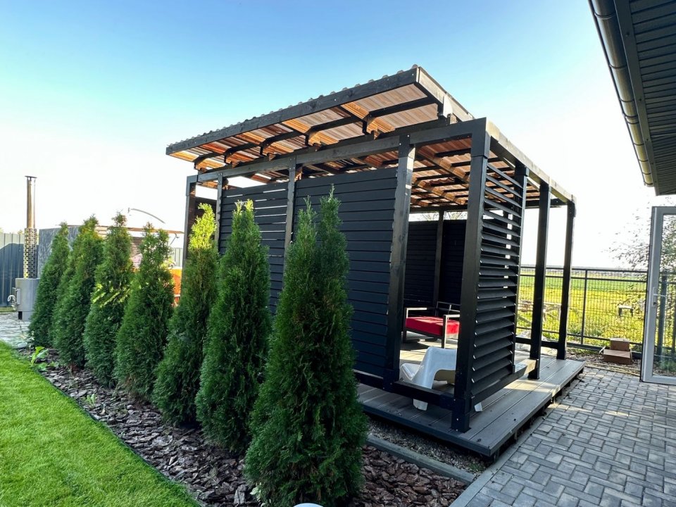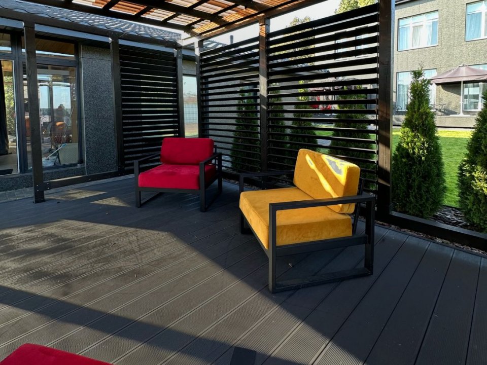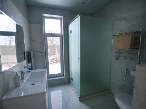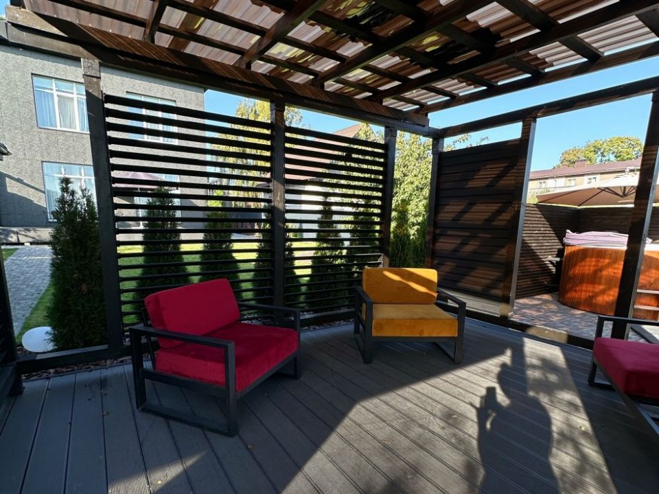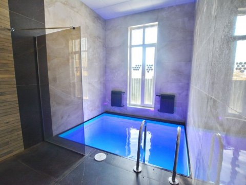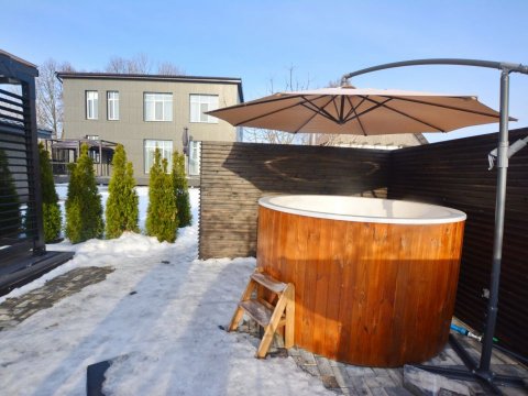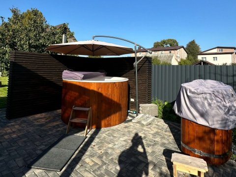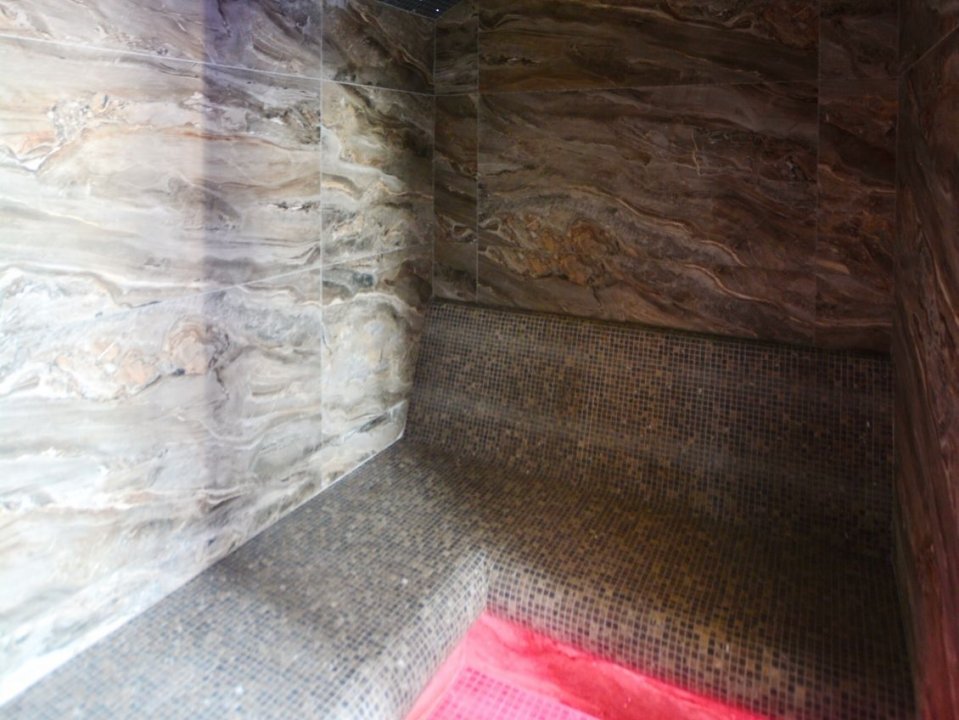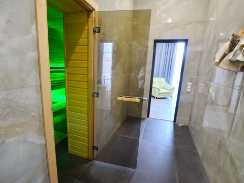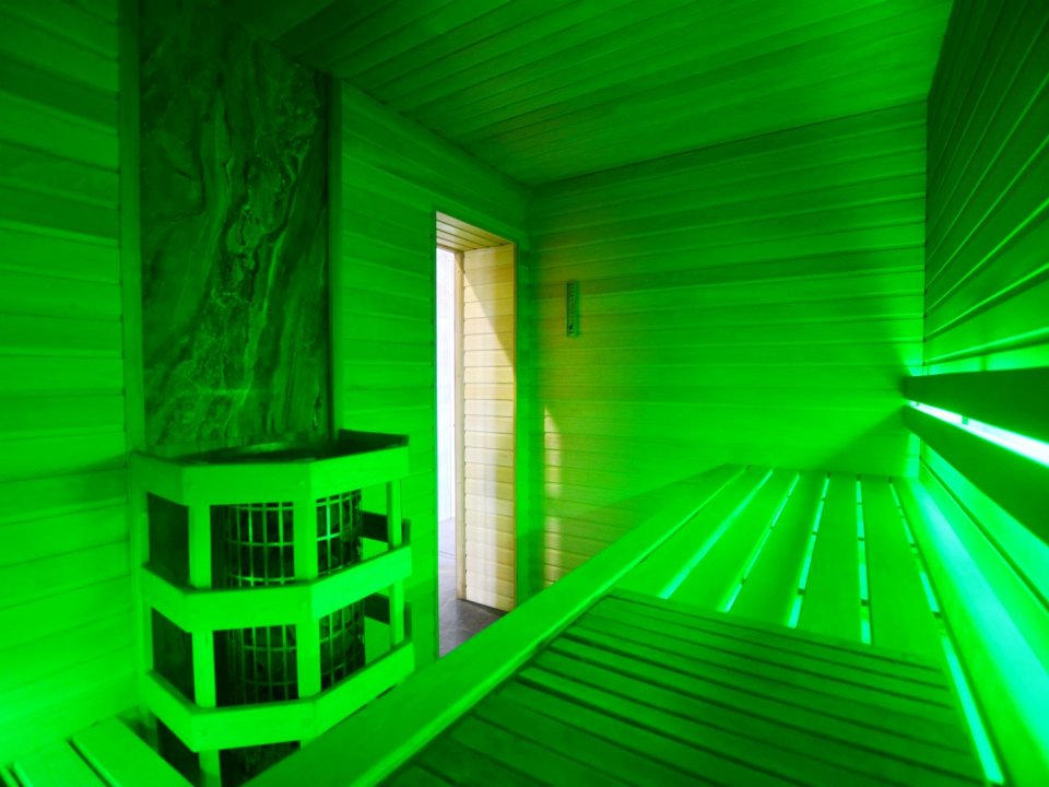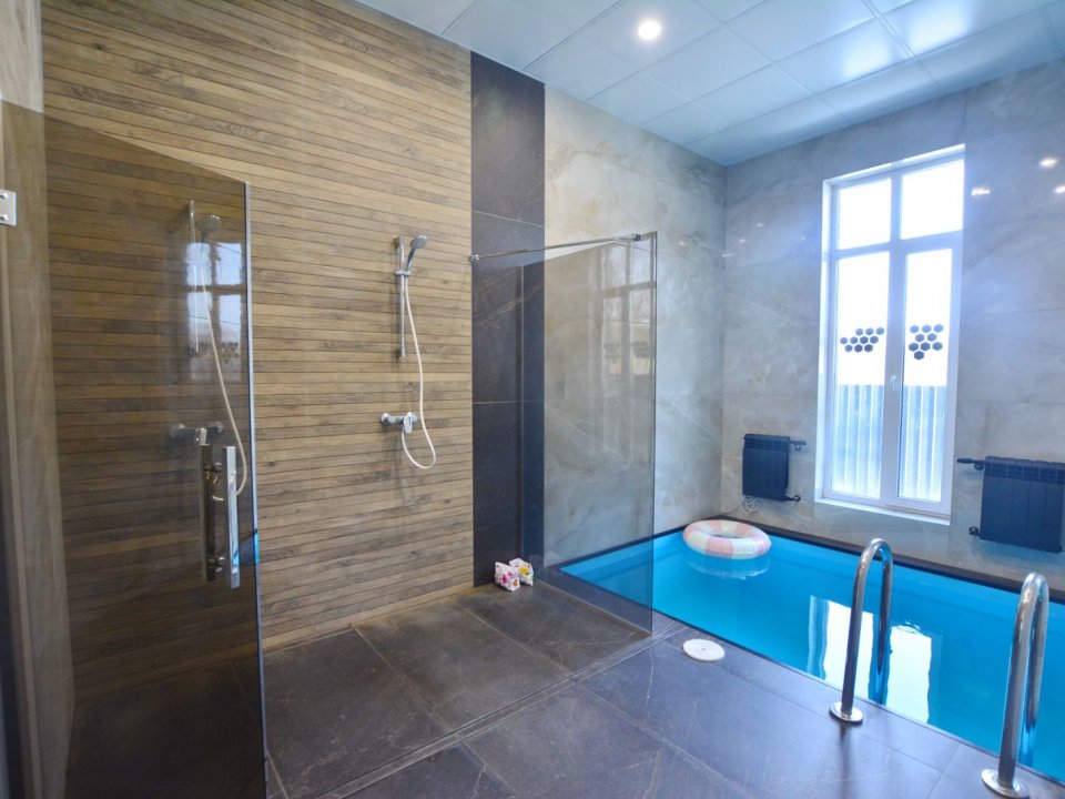 Для банного отдыха в наличии две парные: финско-русская и турецкая (хамам). Имеется бассейн с фильтрацией и подогревом воды (температура составляет 30 градусов). Также на территории обустроен гостевой домик, там можно воспользоваться русской баней.