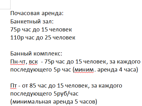 | Мин. цена за сутки (Вск., Чтв): | 1100 рублей до 10-ти человек, далее 50 рублей с человека. |