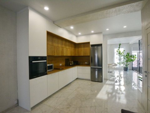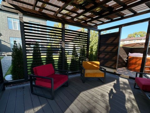 Имеется полноценная кухня.Территория оборудована стоянкой для авто, беседкой с мягкой мебелью, джакузи-фурако и барбекю.