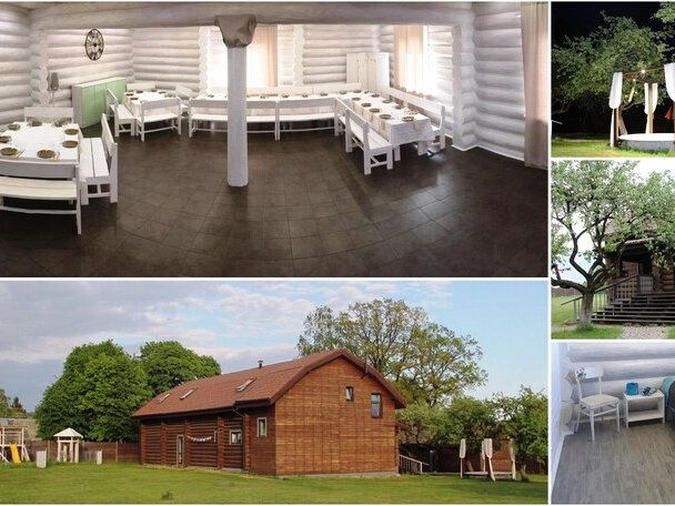 Большой банкетный зал вместимостью до 50-ти человек с мебелью ручной работы и всем необходимым для проведения праздника или просто отдыха. Оборудованная кухня с посудой. 6 КОМНАТ для размещения гостей на ночь, 4 санузла, 2 душевых. Отопление, полы с подогревом. Просторная крытая веранда.
