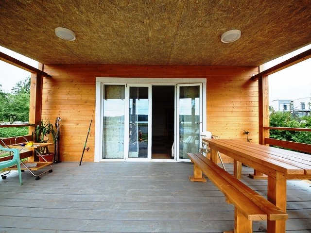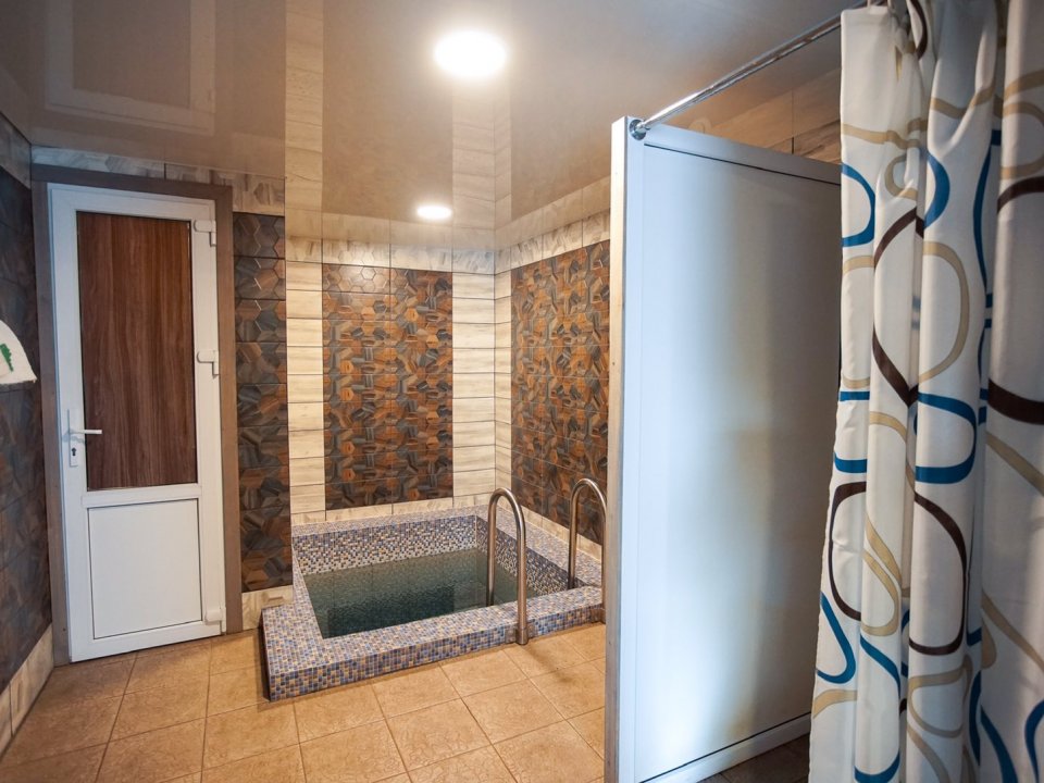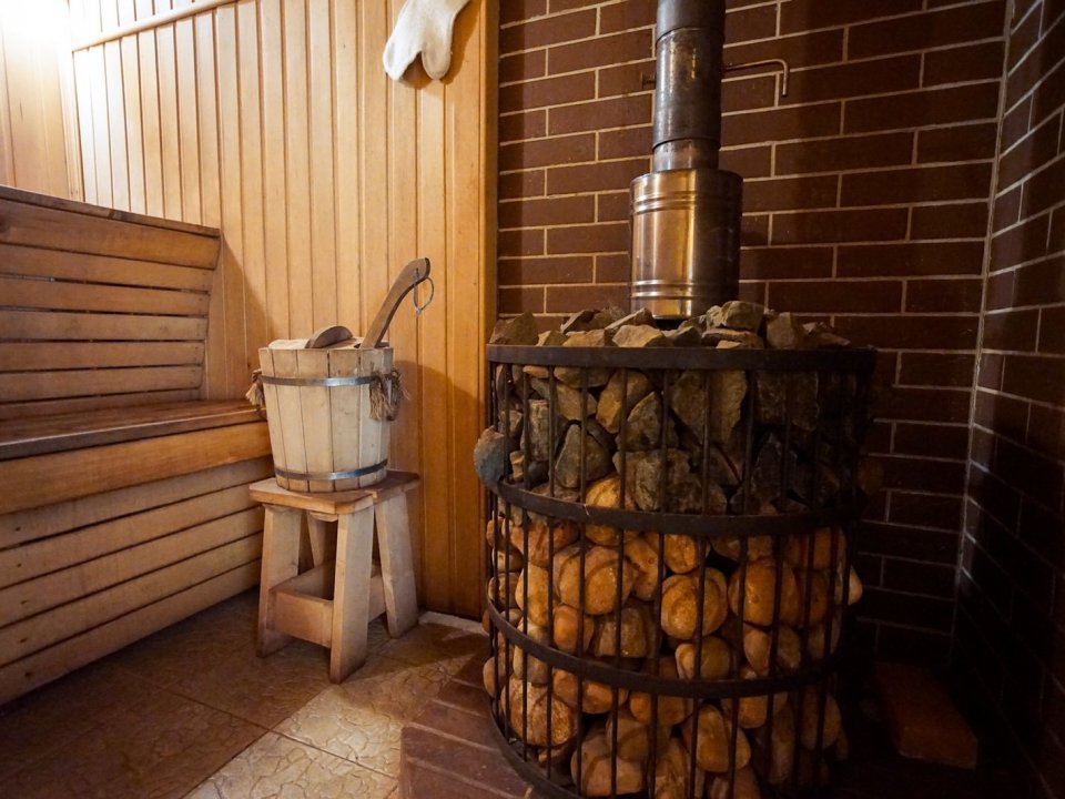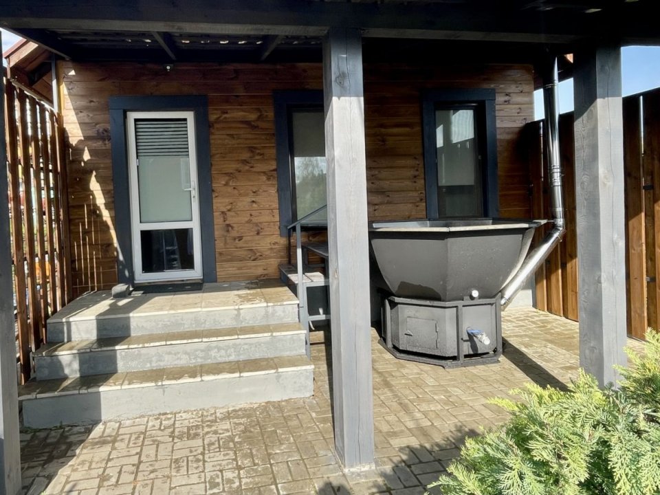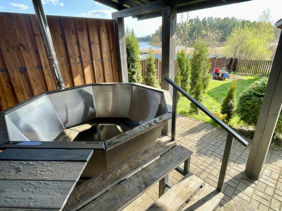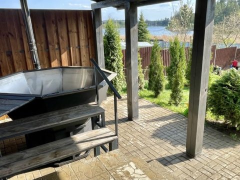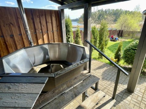 На открытом воздухе установлен банный чан принять горячие ванны можно в любую погоду.