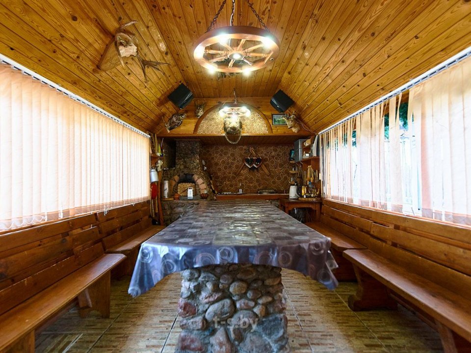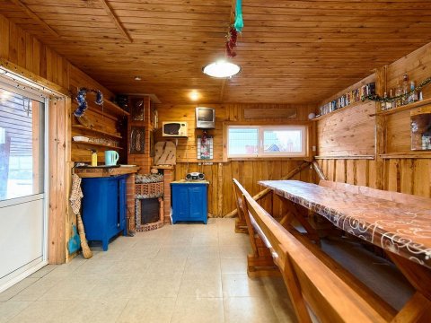 Есть в усадьбе и закрытая обогреваемая беседка на 25 человек, куда можно спрятаться в дождь или в холодное время года. Арендовать её можно отдельно от дома на дневное время.