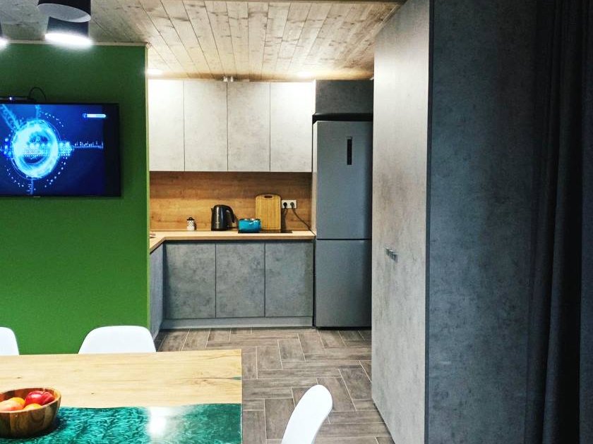 В распоряжении наших постояльцев новый, аккуратный гостевой дом, оборудованный всем необходимым для комфортного отдыха. К услугам гостей гостиная со столом на 6 человек, мягкой мебелью и камином. Оборудована кухня на которой вы сможете заняться приготовлением любимых блюд. В наличии караоке.