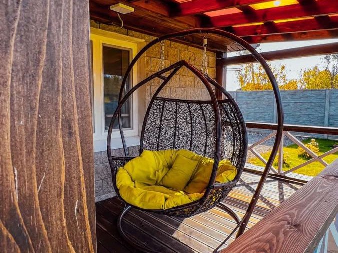Просторная территория с ландшафтным дизайном, множеством зелени и ухоженным газоном позволит прекрасно провести время вне стен дома. Любители спокойного отдыха смогут воспользоваться качелями, а также совершить прогулку в близлежащий лес.