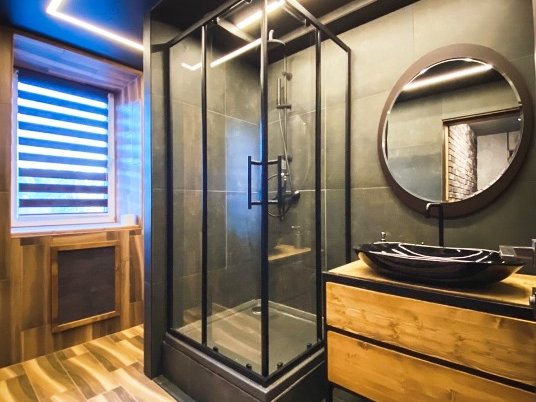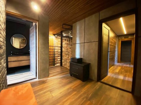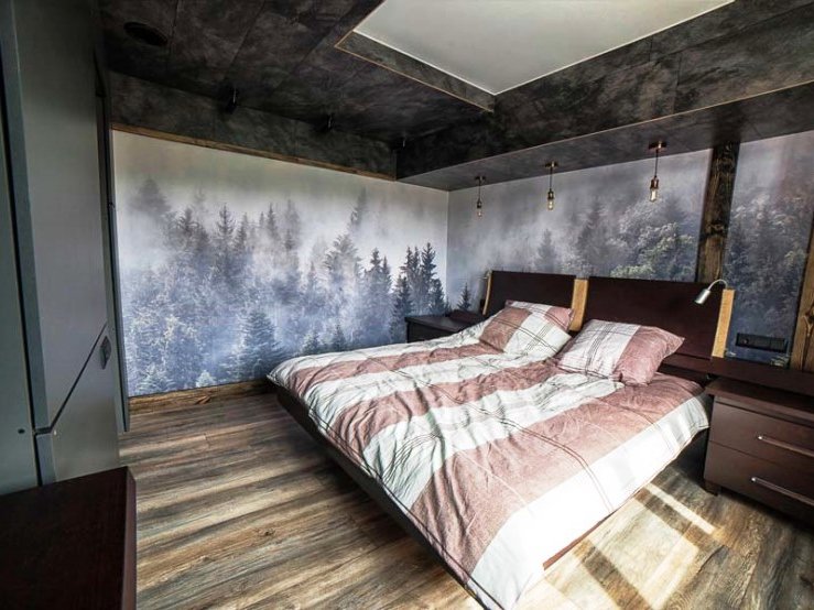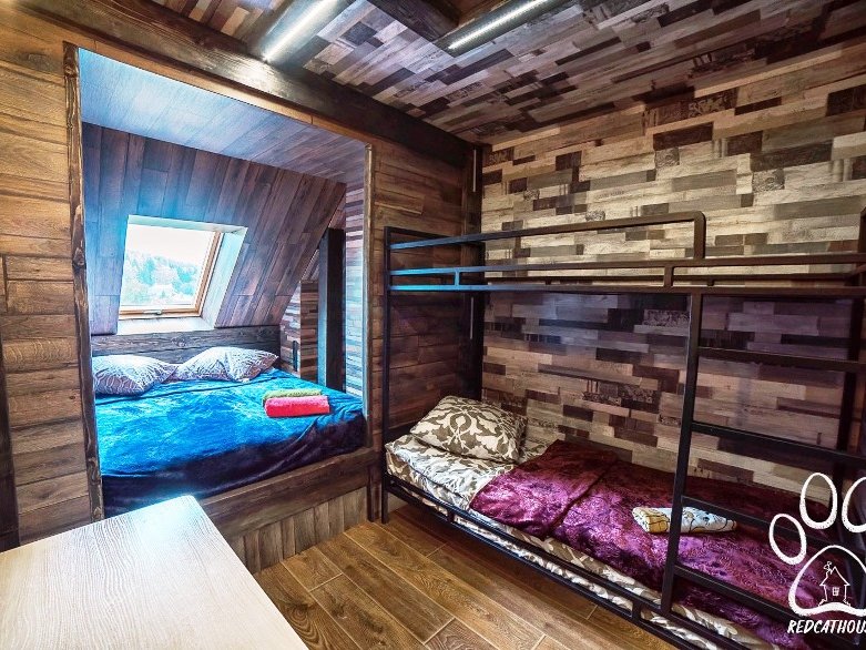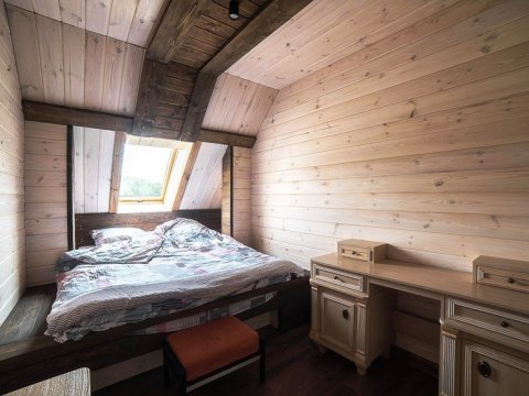 В нашем коттедже на сутки имеется 5 спален и 2 комнаты для отдыха. Комнаты обставлены стильной деревянной и мягкой мебелью, уютными широкими диванами с подушками и двуспальными и односпальными кроватями, заправленными красивым постельным бельем.