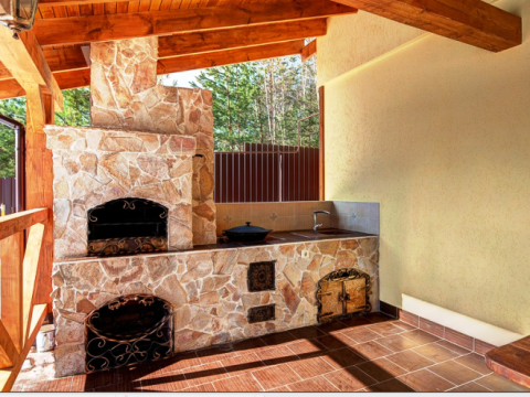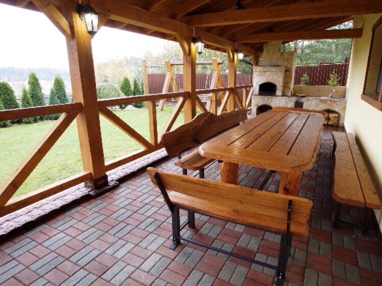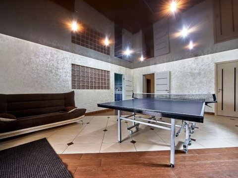 В наличии кухня-столовая с камином и всей необходимой для приготовления любимых блюд посудой и бытовой техникой. Предусмотрена зона отдыха, в которой любителей активного отдыха порадует теннисный стол.