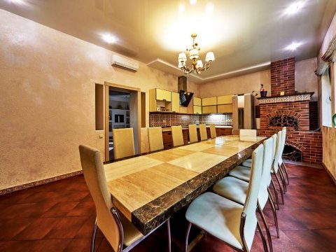 В доме имеется просторный зал для торжественных мероприятий и уютная гостиная с мультимедийным трехметровым проектором и мощной акустической системой.