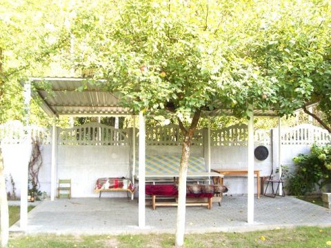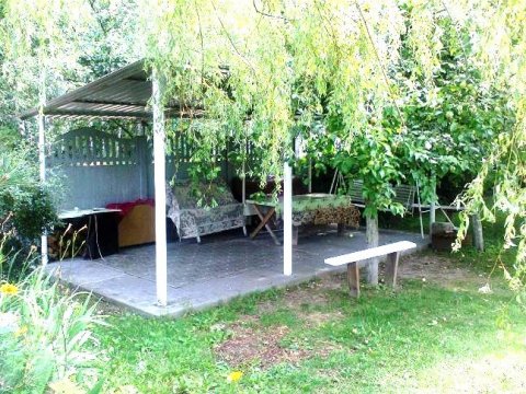Во дворе дома расположена уютная беседка, окружённая зелёными насаждениями, которую можно снять на день отдельно от дома. Стоимость оговаривается индивидуально, в зависимости от количества человек и время аренды.