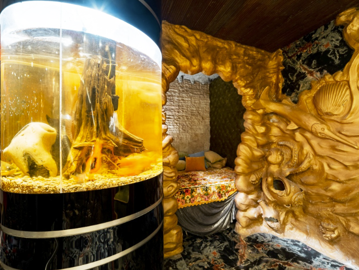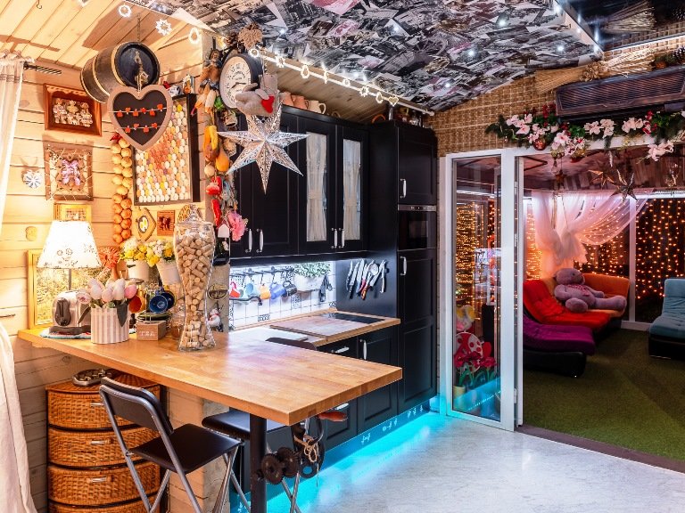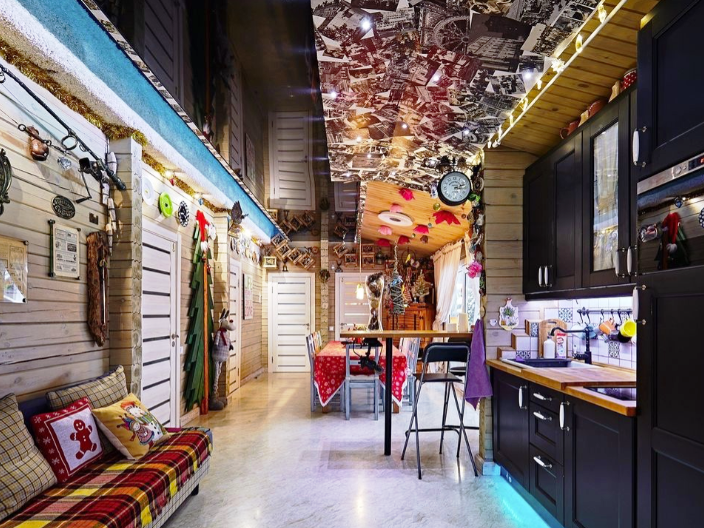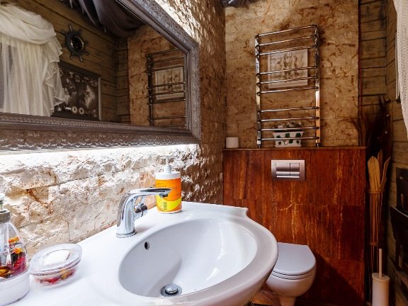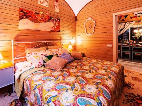 К вашим услугам роскошная гостиная с камином, кинозалом и караоке, выполненная в современном стиле, спальни с элементами hand-made, стильные ванная и туалетная комнаты, дизайнерская кухня со всей необходимой техникой. Вы можете самостоятельно заняться приготовлением любимых блюд. В приготовлении вам поможет микроволновая печь, холодильник, индукционная панель, полный набор всей необходимой посуды, включая принадлежности для сервировки.