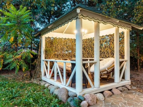 Предлагаем вам посетить нашу сауну, которая расположена прямо в доме. После банных процедур можно принять ванну-джакузи или поплавать в летнем бассейне, установленном на территории. Кстати, территория усадьбы полностью огорожена, поэтому никто и ничто не сможет помешать вашему отдыху.