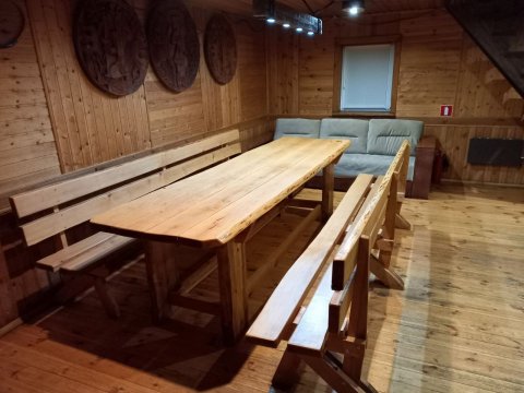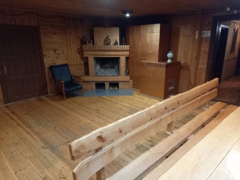 Для вашего размещения на ночь предоставляется 3 отдельные спальные комнаты. Желаете самостоятельно заняться приготовлением любимых блюд - в вашем распоряжении кухня с бытовой техникой и необходимым набором посуды. Обивка из золотистого дерева, резные эксклюзивные панно, удобная мягкая мебель и камин придают интерьеру дома домашнюю атмосферу тепла и уюта. Имеется современная ванная с душевой кабиной и туалетом. При необходимости можно воспользоваться стиральной машиной.