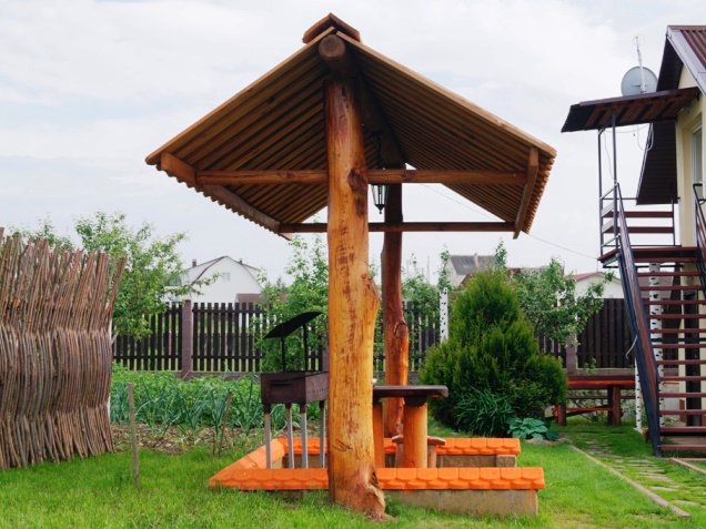 Не придётся скучать и нашим самым маленьким гостям. На большой, ухоженной территории обустроены детская спортивная площадка с качелями и песочницей, беседка вместимостью до 25-ти человек, оборудованная барбекю и мангалом. Вам не придётся переживать за безопасность своих малышей - усадьба со всех сторон огорожена забором.