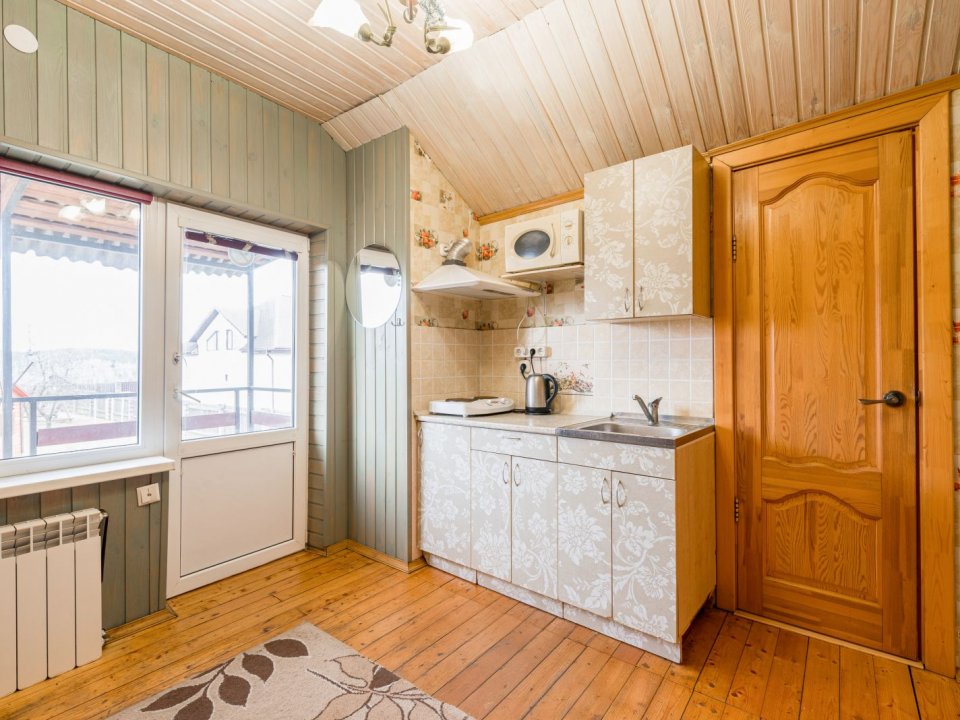 Второй этаж – 2 отдельные комнаты для ночлега, кухня, санузел. Вы можете сами приготовить свои любимые блюда или заказать еду в находящихся в шаговой доступности кафе и ресторане. По договорённости с гостеприимными хозяевами, для вас организуют двухразовое питание.