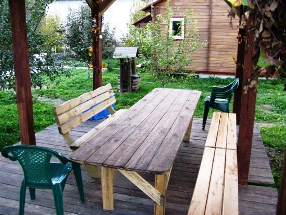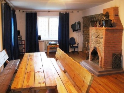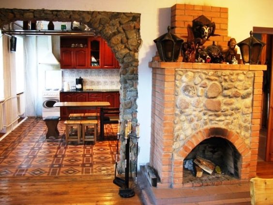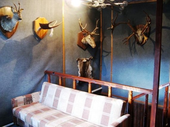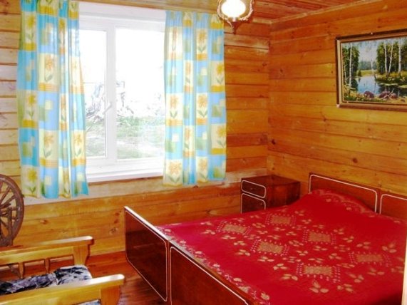 Усадьба расположена на окраине посёлка, всего в 10-15 минутах езды от города.... Для приятного и комфортного отдыха или проведения семейных торжеств предлагаются два гостевых дома. Вам предоставляется возможность снять коттедж на сутки, двое и более длительное время, провести в нём выходные, встретить Новый год, отметить всевозможные праздники. Стены дома готовы принять до 20-ти гостей. К вашим услугам большой двухуровневый коттедж с 5-ю спальнями, холлом и санузлом с душевой кабиной, туалетом и умывальником. На первом этаже расположены просторный банкетный зал с действующим камином и большим обеденным столом. Зал оснащён музыкальной аппаратурой, телевидением и интернетом. Здесь же находится кухня, на которой вы самостоятельно сможете заниматься приготовлением блюд по собственным рецептам. Бытовая техника и вся необходимая посуда в вашем распоряжении. На второй этаж поднимаемся по деревянной лестнице и оказываемся в оформленной в охотничьем стиле гостиной и уютных спальнях. Здесь же ещё один санузел с душем, умывальником и туалетом. Любителям горячего пара придётся по душе наша финская сауна, находящаяся в цокольном этаже коттеджа. Прохладный бассейн, в который окунуться после парилки одно удовольствие, подойдёт как нельзя кстати. А в уютной, обитой деревом комнате отдыха, будет приятно выпить чашечку горячего, целебного чая или употребить что-нибудь покрепче. Второй небольшой домик предназначен для романтического отдыха на двоих. Его также можно забронировать на сутки и более. Стоимость аренды - 15 у.е. с человека. Для приготовления ароматных шашлыков, запечённой рыбы или овощей имеется мангал и все необходимые атрибуты. Во дворе оборудованы две деревянные беседки с большим вместительным столом. В непосредственной близости от дома находится лес - прекрасное место для пеших прогулок, сбора грибов и ягод. В нашем коттедже на сутки курят только в специально оборудованном месте. Для тех, кто прибыл на собственном авто, предусмотрена парковка. Не составит труда добраться до усадьбы и на общественном транспорте. В посёлок без перерыва ходят автобусы и маршрутные такси. Снять коттедж № 35 или другую усадьбу на сутки можно на нашем сайте www.Snimi.net. ОТДОХНУВ В ЛЮБОМ ИЗ ПРЕДСТАВЛЕННЫХ КОТТЕДЖЕЙ, НЕ ЗАБУДЬТЕ ПЕРЕЗВОНИТЬ НАМ, ЧТОБЫ ПОЛУЧИТЬ НЕБОЛЬШОЙ ПОДАРОК ОТ САЙТА.