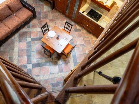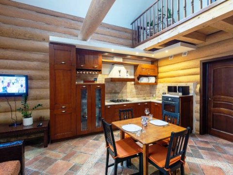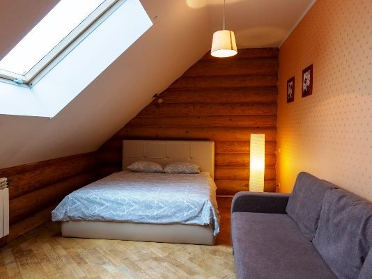 К услугам наших гостей 2 отдельные спальные комнаты для размещения на ночь. На первом этаже находится просторная гостиная со столовой. На имеющейся кухне вы найдёте все самое необходимое для самостоятельного приготовления любимых блюд. Камин в гостиной согреет вас зимними вечерами, создав приятную домашнюю атмосферу.