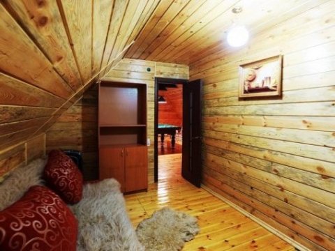 В вашем распоряжении коттедж, построенный из экологически чистого материала - деревянного бруса.... Уютный, двухэтажный дом на сутки, идеально подойдёт для проведения семейных торжеств, корпоративных или дружественных вечеринок. В дневное время усадьба может принять до 20-ти гостей. В доме предусмотрено всё для вашего комфортного времяпровождения. На первом этаже расположена просторная гостиная с большим, деревянным столом и уютным, мягким диваном. К услугам гостей спутниковое телевидение и караоке. Здесь же находится кухня с необходимыми бытовыми приборами и посудой, что позволяет самостоятельно готовить любимые блюда. В наличии ванная комната с феном и туалетно-косметическими принадлежностями. Поднявшись по деревянной лестнице, попадаем на второй этаж, где находятся комнаты для ночлега. Всего в доме 4 отдельные спальни. На этом же уровне расположена бильярдная комната с бильярдным столом для игры в американский пул. Конечно же не забыли мы и о ценителях горячего пара. Гостям нашего коттеджа предоставляется возможность попариться в русской бане. Одна приятная и весьма удобная особенность - баня находится на первом этаже и попасть в неё можно, не покидая пределов дома. А после парилки предлагаем окунуться в небольшой прохладный бассейн. На участке возле коттеджа обустроена большая, застеклённая беседка вместимостью до 15-ти человек и общей площадью 25 квадратных метров. Оборудованная печью, беседка позволяет готовить шашлык прямо внутри. Отдельный мангал установлен и на улице. Кстати, беседку, как и баню, можно арендовать без ночлега. Территория усадьбы полностью огорожена - ничто не сможет помешать вашему отдыху. Если у вас нет возможности и желания приехать на личном транспорте, владелец усадьбы поможет с доставкой в коттедж и обратно. Кстати, выгодное отличие данной усадьбы на сутки от других домов, сдающихся посуточно - время прибытия и выезда не регламентировано и оговаривается в индивидуальном порядке. Снять коттедж № 48 или другую усадьбу на сутки можно на нашем сайте www.Snimi.net. ОТДОХНУВ В ЛЮБОМ ИЗ ПРЕДСТАВЛЕННЫХ КОТТЕДЖЕЙ, НЕ ЗАБУДЬТЕ ПЕРЕЗВОНИТЬ НАМ, ЧТОБЫ ПОЛУЧИТЬ НЕБОЛЬШОЙ ПОДАРОК ОТ САЙТА.