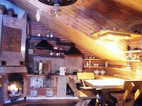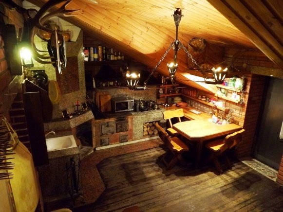 Есть оборудованная кухня-столовая с камином, где вы сможете порадовать себя любимыми блюдами. В наличии спутниковое телевидение, караоке, безлимитный интернет.