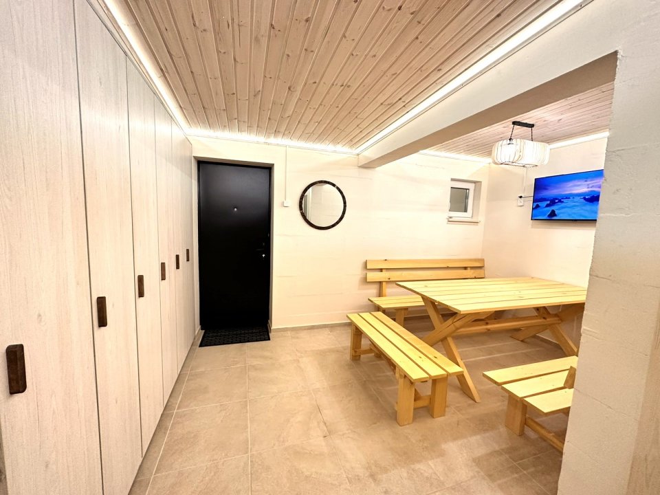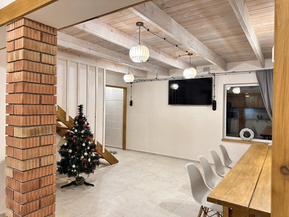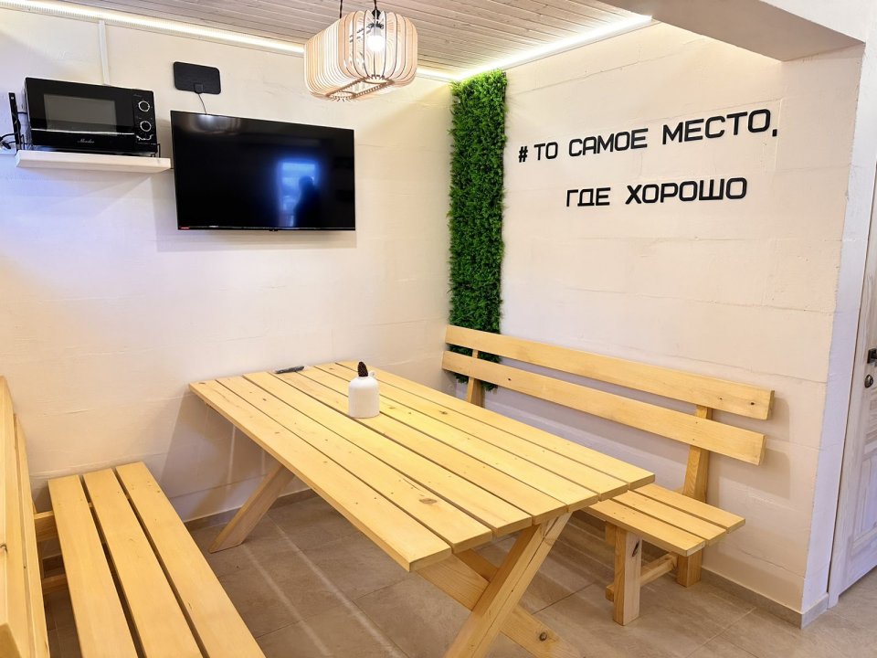 На 1 этаже расположена комната отдыха с большим столом, мягкой мебелью, TV и караоке.