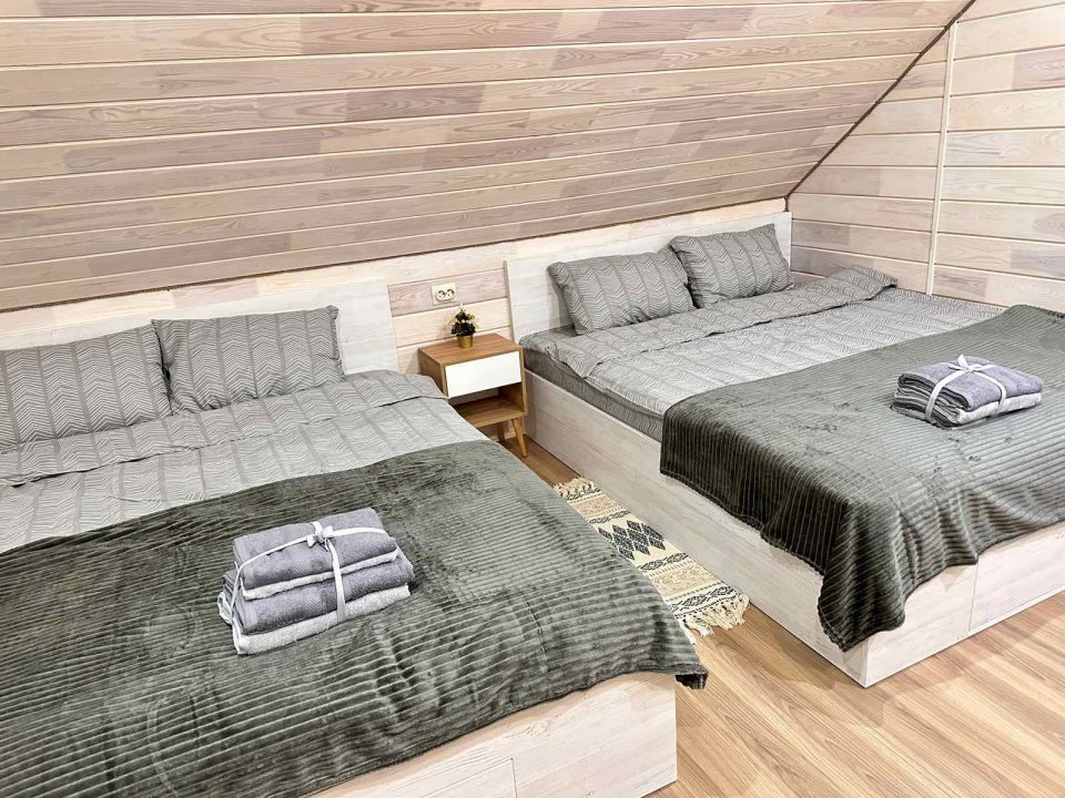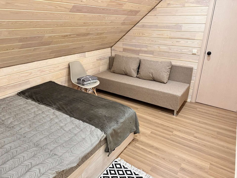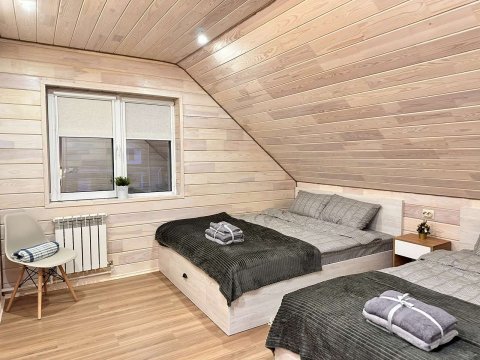 На 2-м этаже находятся 3 спальные комнаты с двуспальными кроватями с ортопедическими матрасами и диван-кроватью.