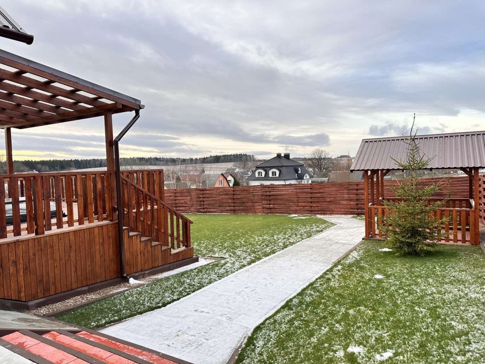 На улице оборудована открытая терраса - идеальное место для проведения пикника на свежем воздухе. С неё открывается прекрасный вид на лесной массив и красоты окружающей природы.