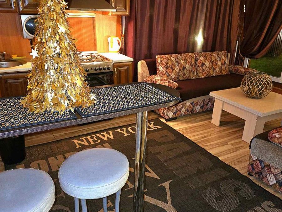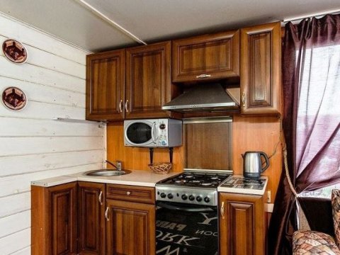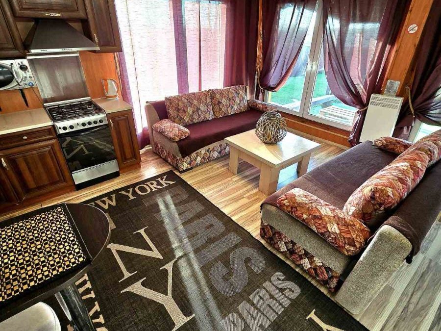 В доме имеется 2 изолированные спальни и гостиная-студия. В наличии вся бытовая техника (холодильник, стиральная машина, ЖКИ телевизор, микроволновая печь, электрический чайник, бойлер, газовая плита).