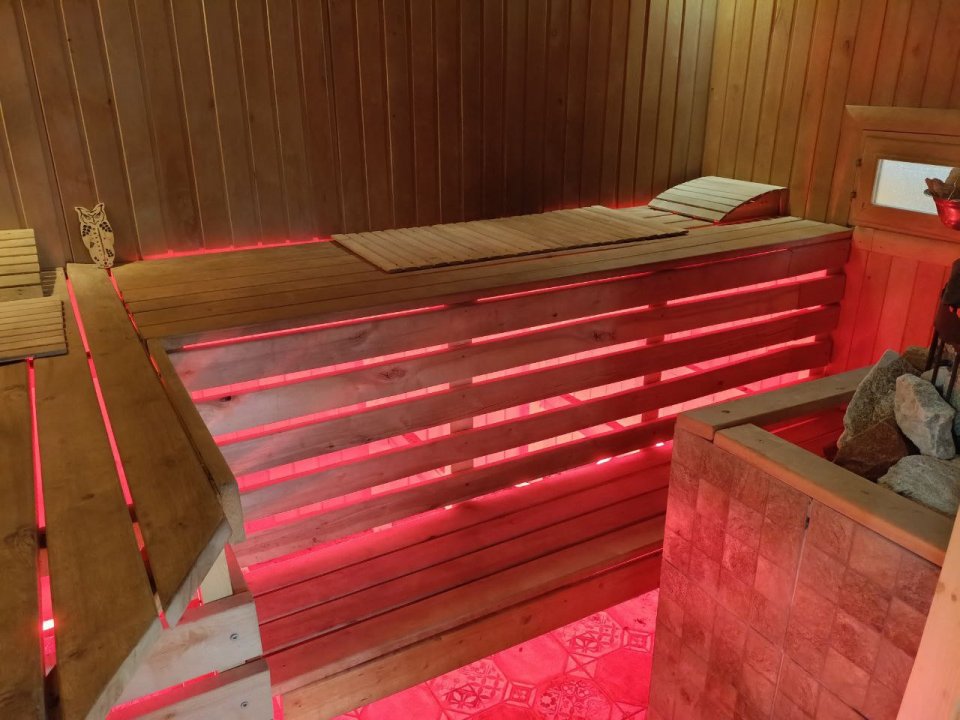 Здесь же, в доме, находиться баня - сауна, что весьма удобно. Имеется камин, комнаты обставлены современной мебелью.